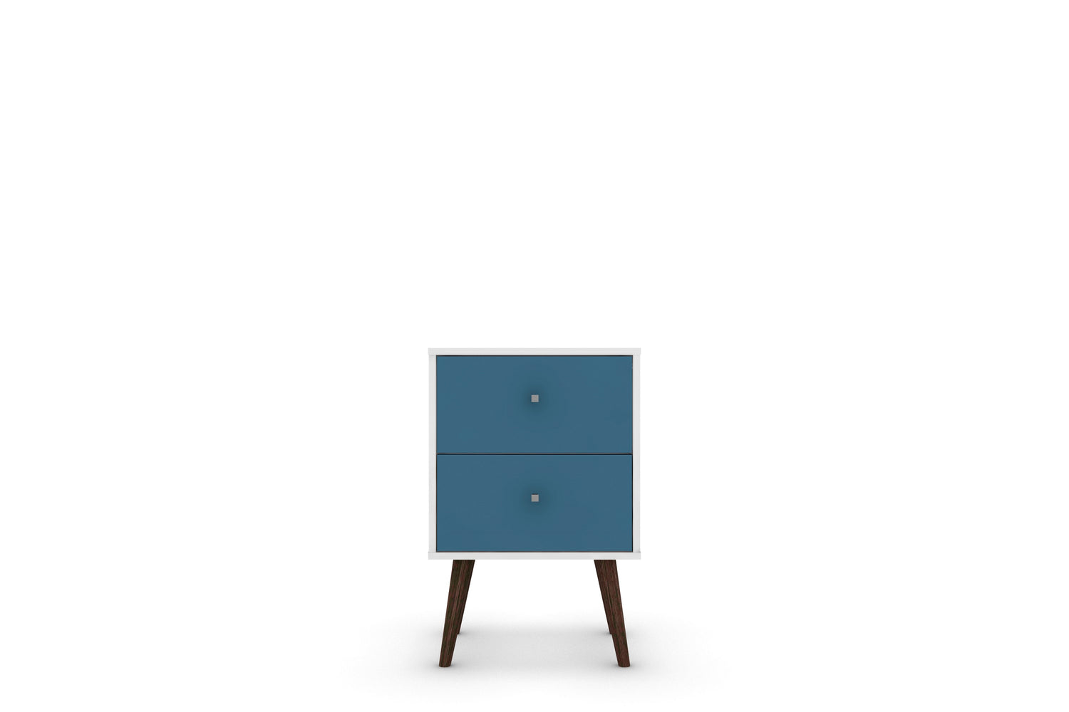 - Item Name: Liberty Mid-Century Modern Nightstand 2.0 in White and Aqua Blue