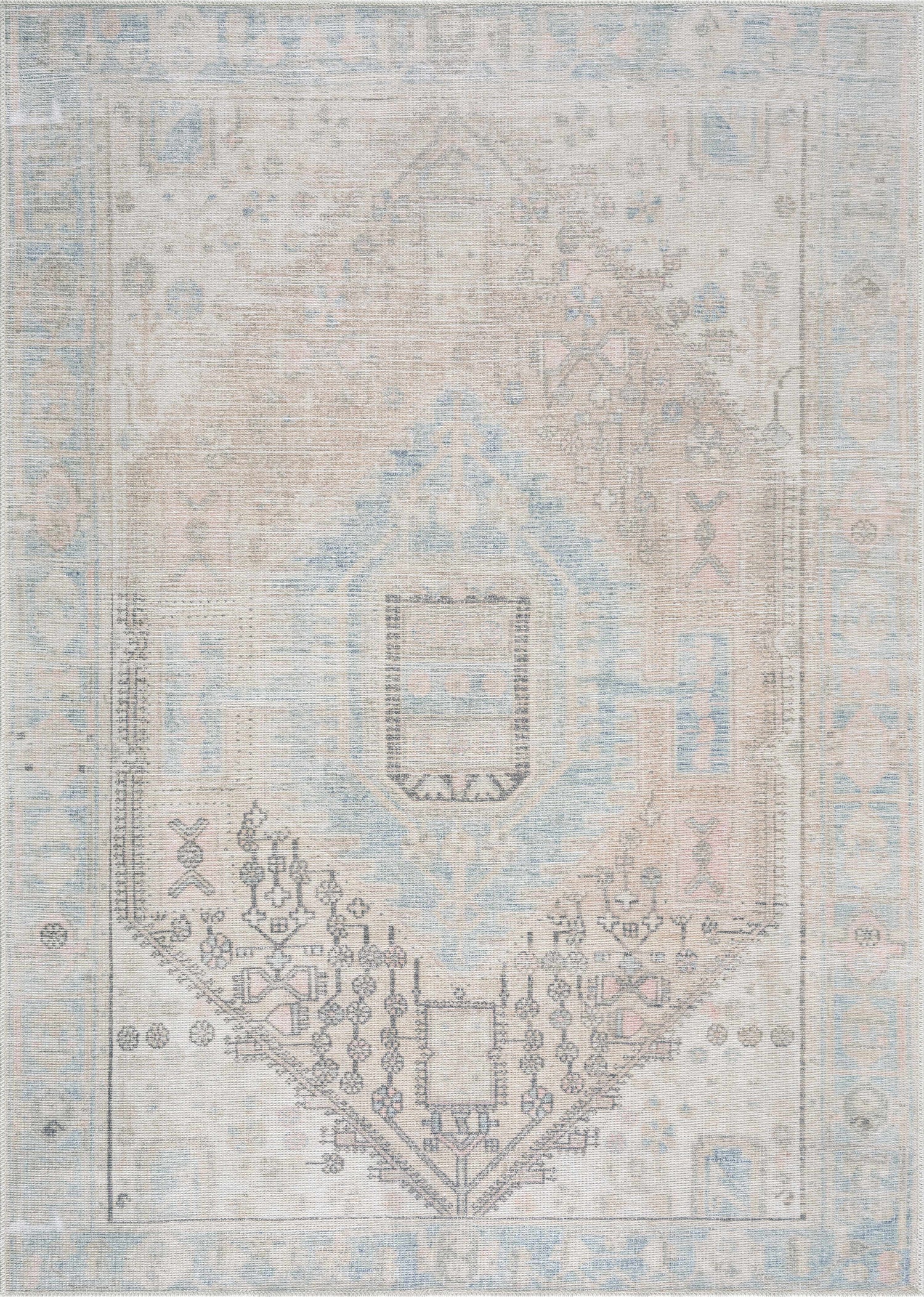 About: This gorgeous traditional rug features a beautiful vintage-inspired design with a boho feel. The rug colors are stunning, with blush, light blue, and cream creating a gorgeous contrast. If you're looking to brighten up your living room, nursery or bedroom and add some warmth and texture, this is the perfect choice! |