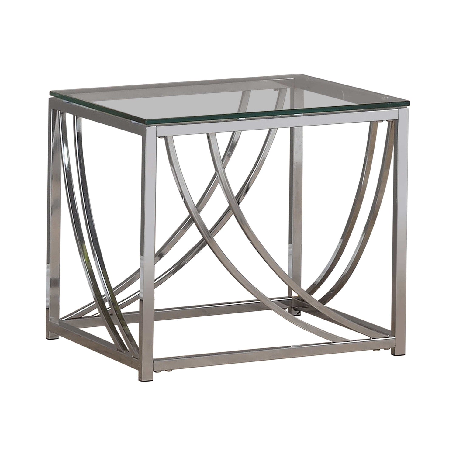 Add luxury to a sitting area with this sleek and stunning end table. Featuring a glass table top, this table oozes elegance. Clean and open, the smooth curves on the base radiate in a shiny chrome finish. Top with a vase of fresh flowers or a sculpture-inspired lamp for the ultimate sophisticated aura. Swoop accents and a contemporary design add visual texture that is perfect for complementing lush motifs.