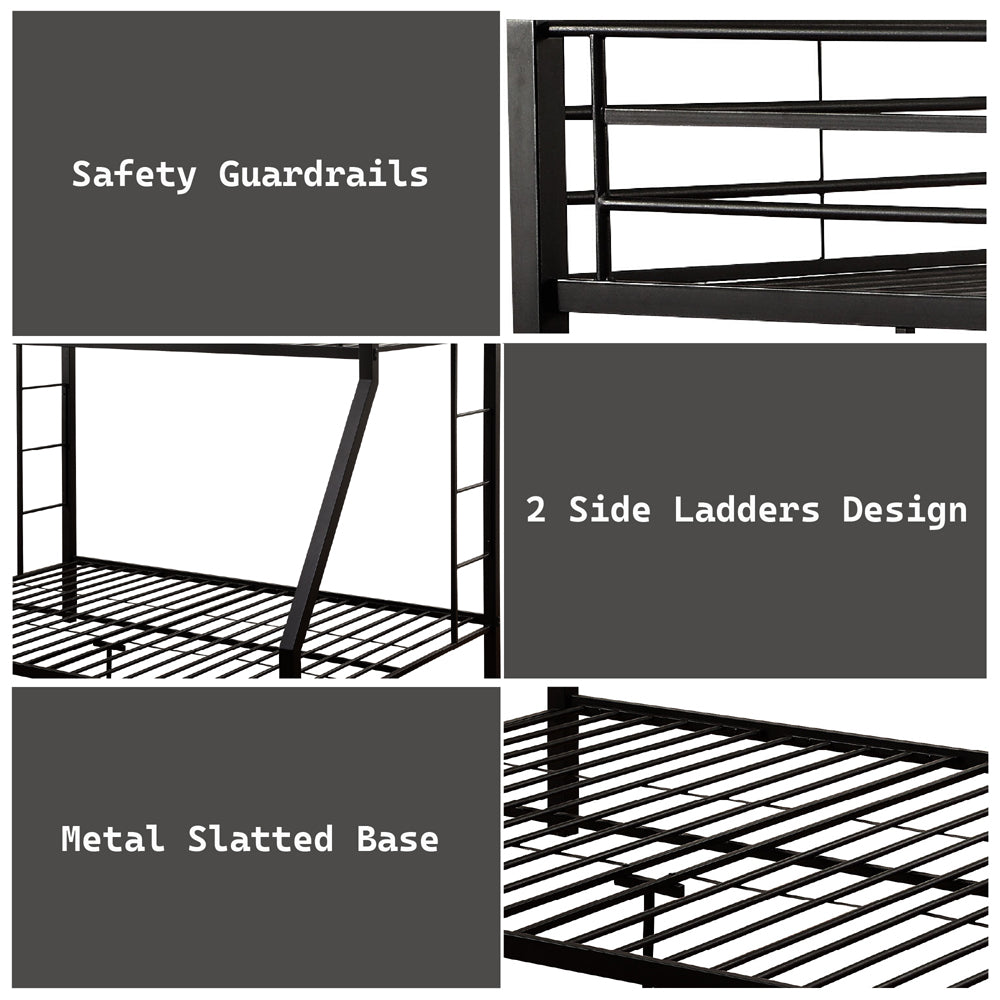 The Limbra contemporary bunk bed collection is an ideal choice for any youth bedroom. Featuring sturdy metal construction in black sand finish, metal slat system included, two built-in side ladders, and full-length guardrails that will keep your child safe.