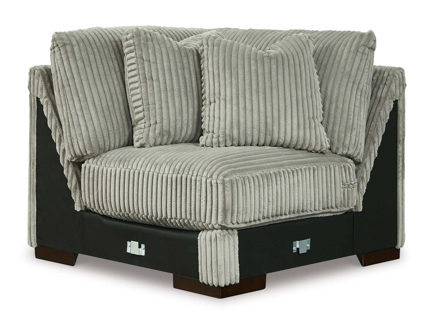 Plush and posh. Showcase your eye for on-trend texture with the statement-making cord upholstery of all living room sets. Its stunningly soft fabric entices in a gray hue, complementing contemporary color palettes. Sink into the spacious cushion and plan to stay a while—this cozy living room chair highlights your high-end approach to comfort and style. Ornate Home introduces Lindyn Fog 4pc Sectional to enhance the beauty of your living spaces.