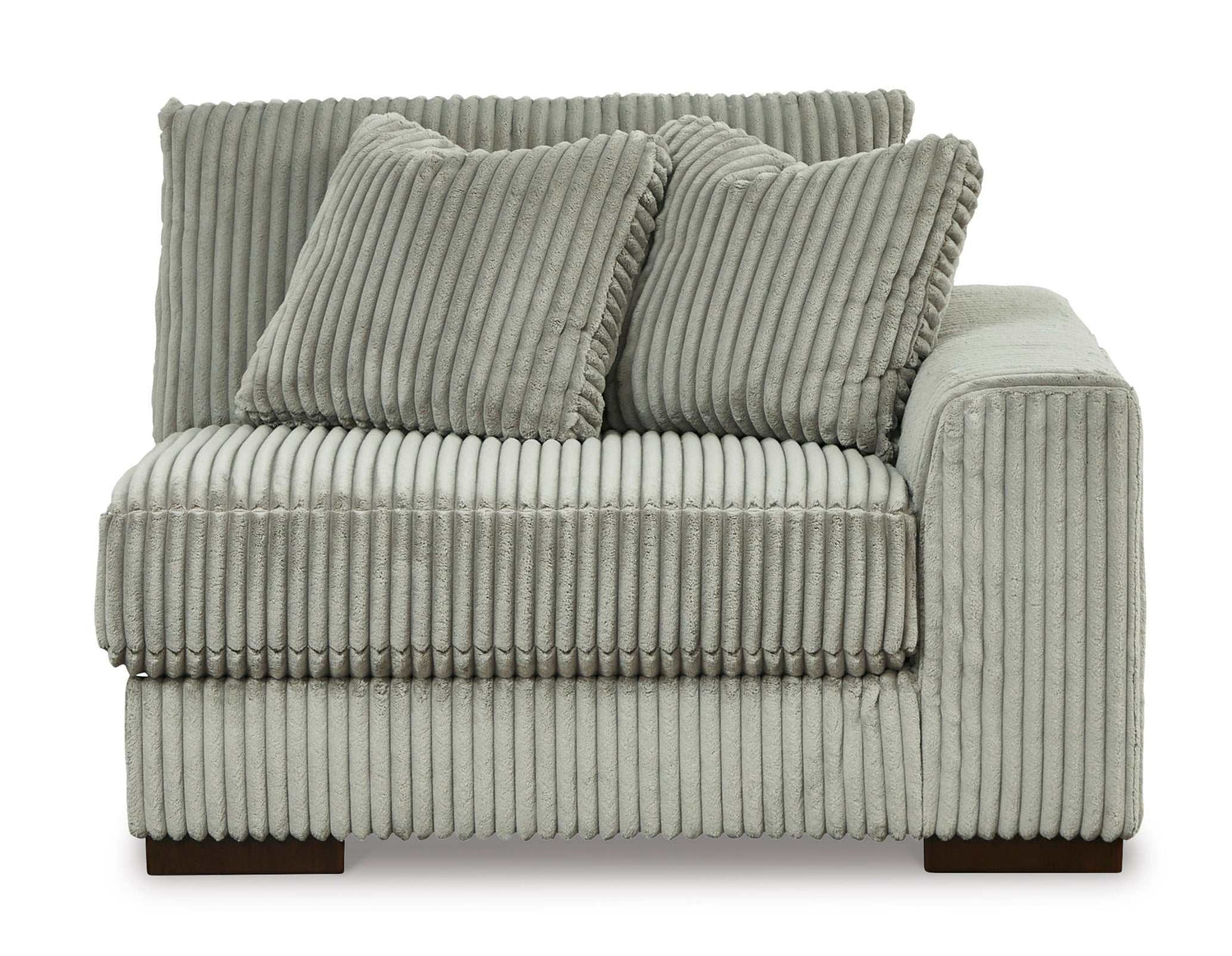 Plush and posh. Showcase your eye for on-trend texture with the statement-making cord upholstery of all living room sets. Its stunningly soft fabric entices in a gray hue, complementing contemporary color palettes. Sink into the spacious cushion and plan to stay a while—this cozy living room chair highlights your high-end approach to comfort and style. Ornate Home introduces Lindyn Fog 5pc LAF Chaise Sectional to enhance the beauty of your living spaces.