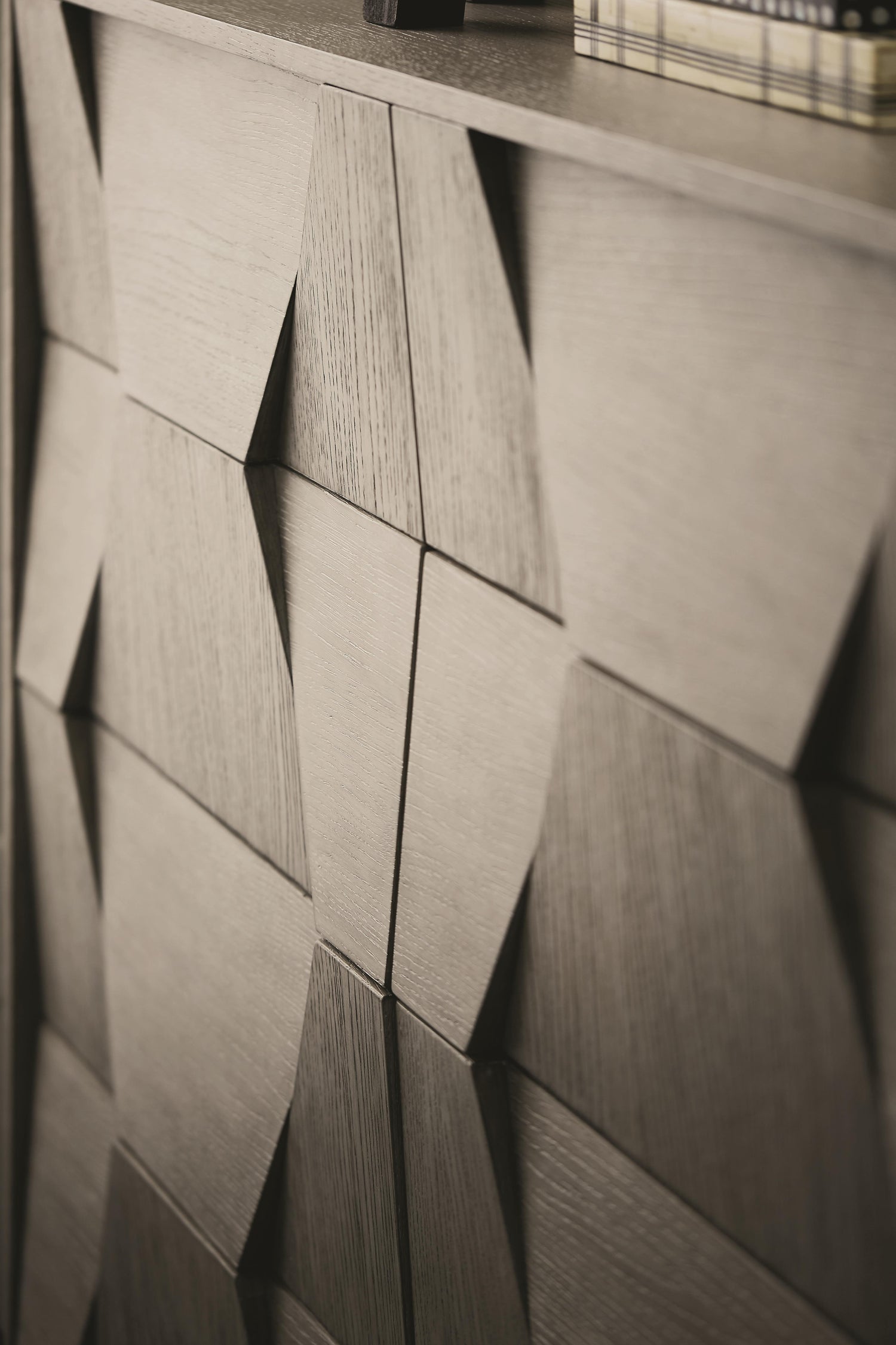 - White oak veneers in Cerused Charcoal finish
