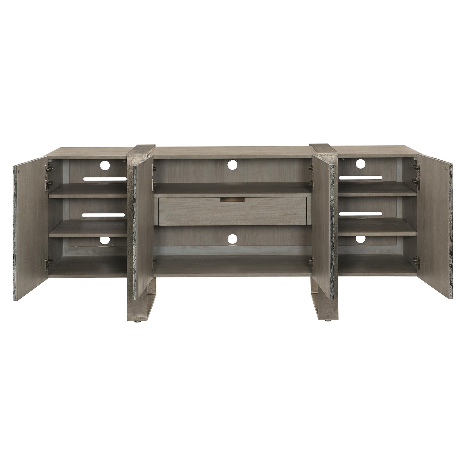 Linea Textured Graphite/Black Forest Marble/Cerused Greige Entertainment Credenza