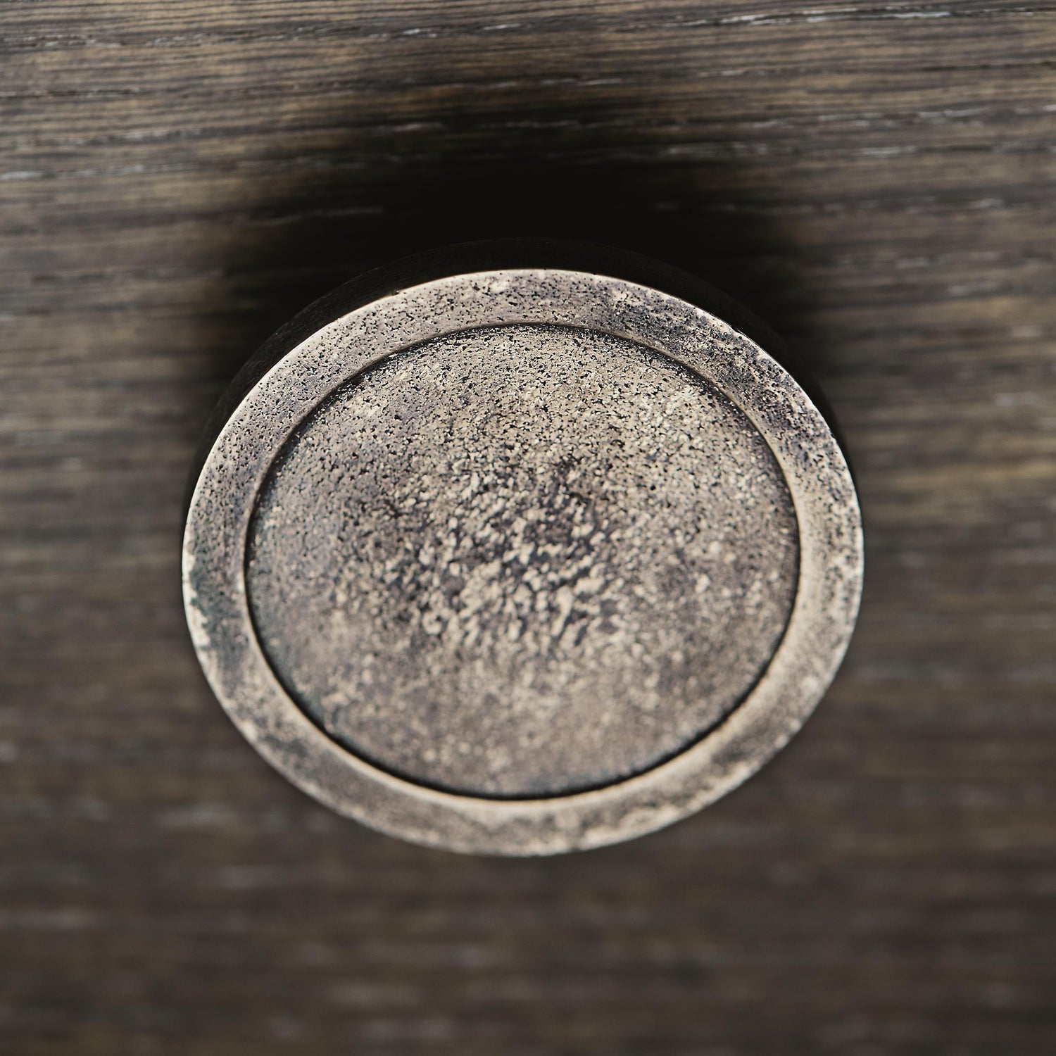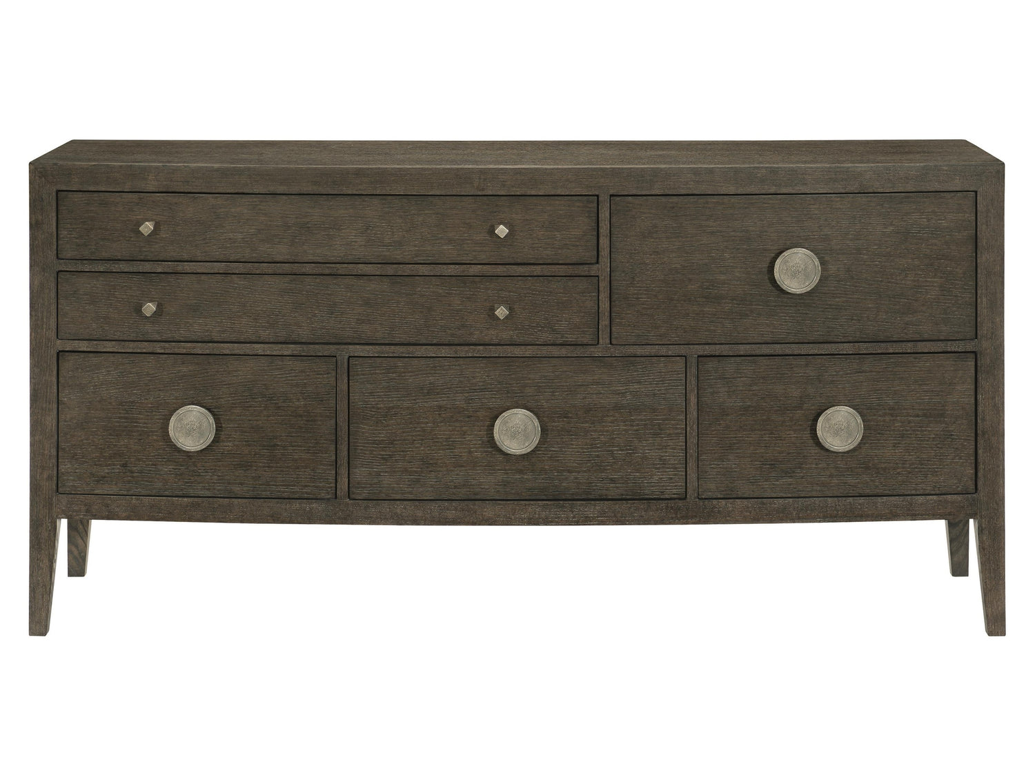 - White oak and ash solids and veneers in Cerused Charcoal finish with drawer pulls in Textured Graphite finish