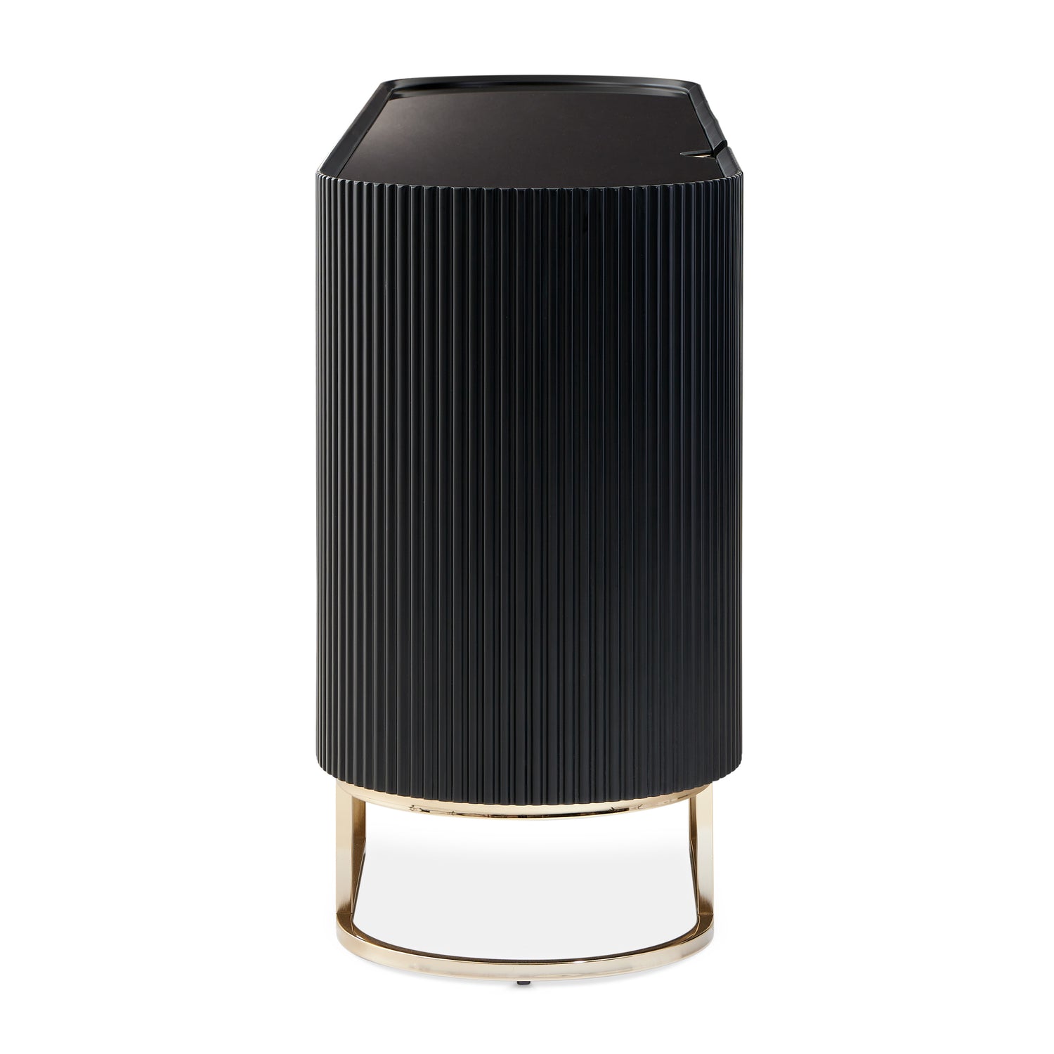 Make a bold design statement with the vibrantly modern Lisbon Console Cabinet, a piece that demands attention and becomes the focal point in any room. With its modern aesthetic and multiple storage options, this cabinet stands out as a stylish and functional piece of furniture. The ribbed lines and sled base contribute to the cabinet's modern and dynamic façade, creating a visually striking presence. These design elements not only add to the contemporary appeal but also provide a sense of sophistication and uniqueness to the overall look. The gold inlay adds another layer of interest, making the Lisbon Cabinet unique.