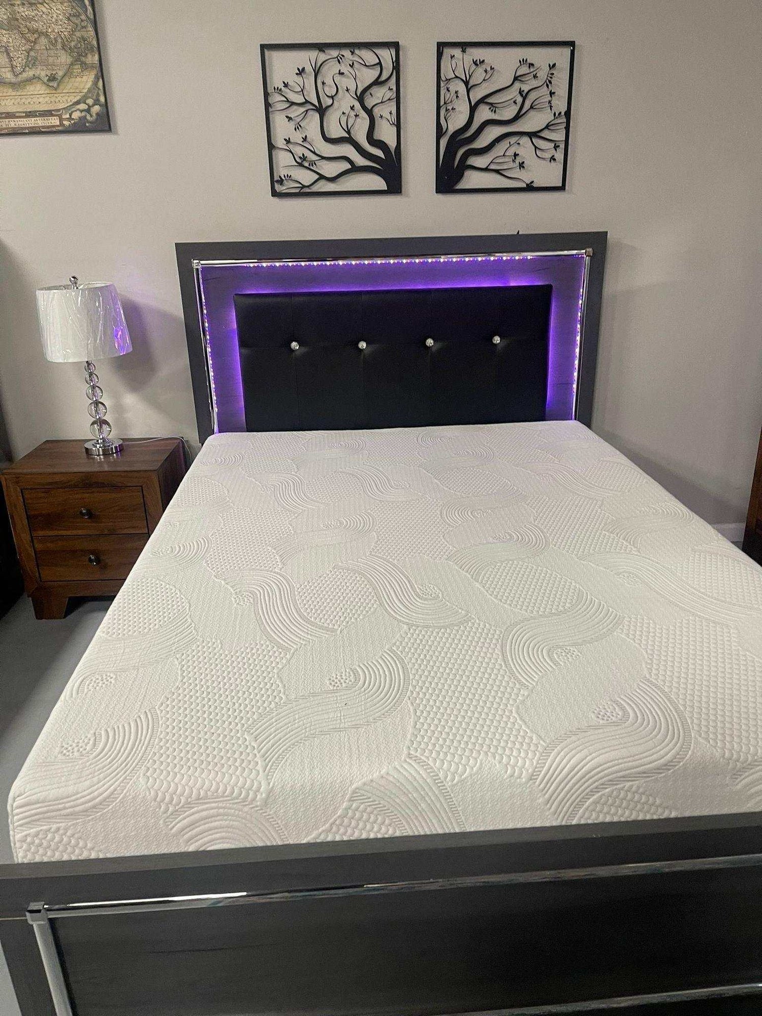Lodanna Gray Queen Panel Bed w/ LED Bedroom Set / 4pc