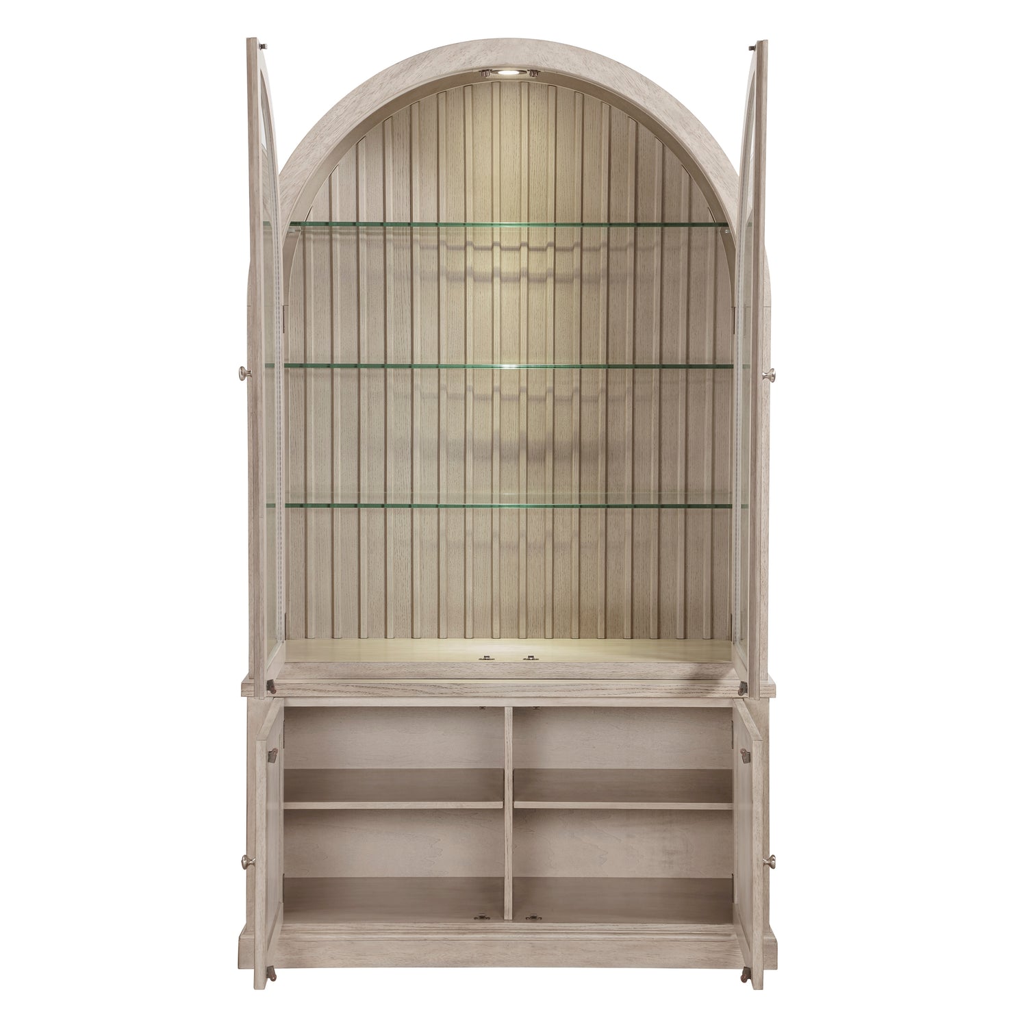 - Top hutch with glass doors and 3 fixed shelves, Halogen lighting