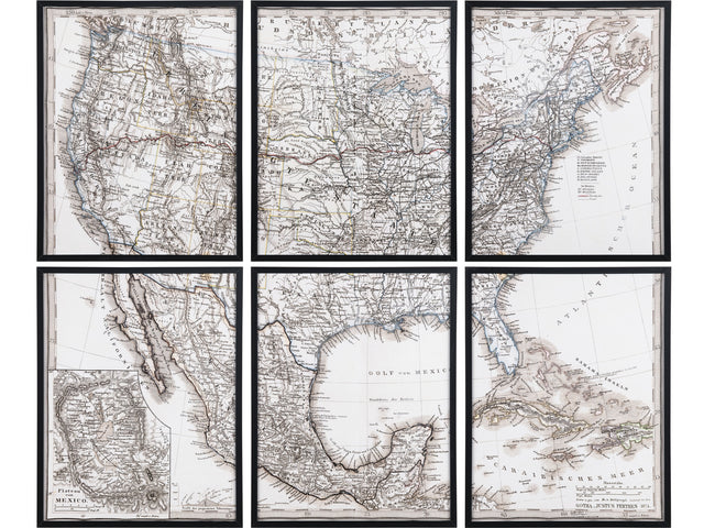 - Set of six framed map prints inspired by vintage cartography