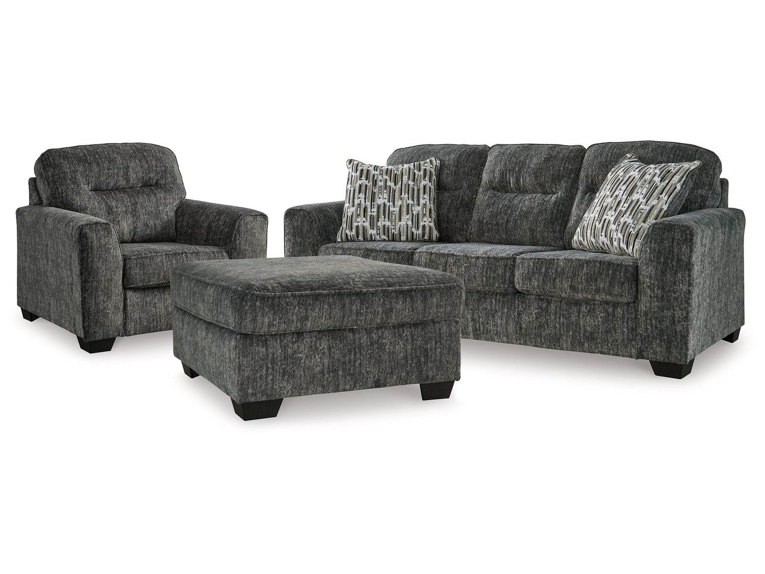 - Item Name: Lonoke Gunmetal Sofa, Oversized Chair and Ottoman