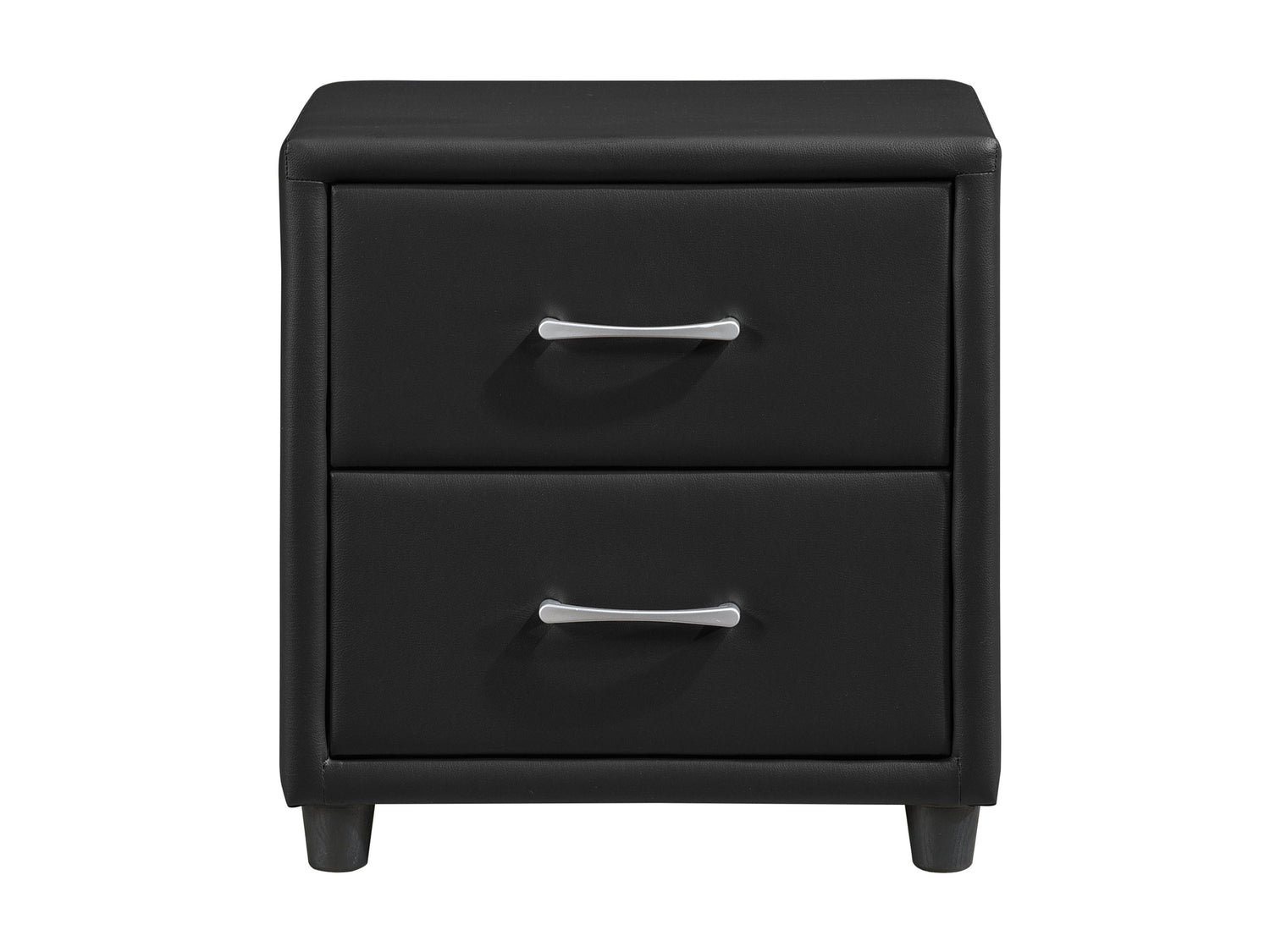 The contemporary design of the Lorenzi Collection is enhanced by the addition of the durable black faux leather covering of the nightstand’s exterior. Silver tone hardware provides a distinct contrast to the finish of the nightstand’s surface. Scaled for urban living, this collection will provide a unique and stylish addition to your bedroom.