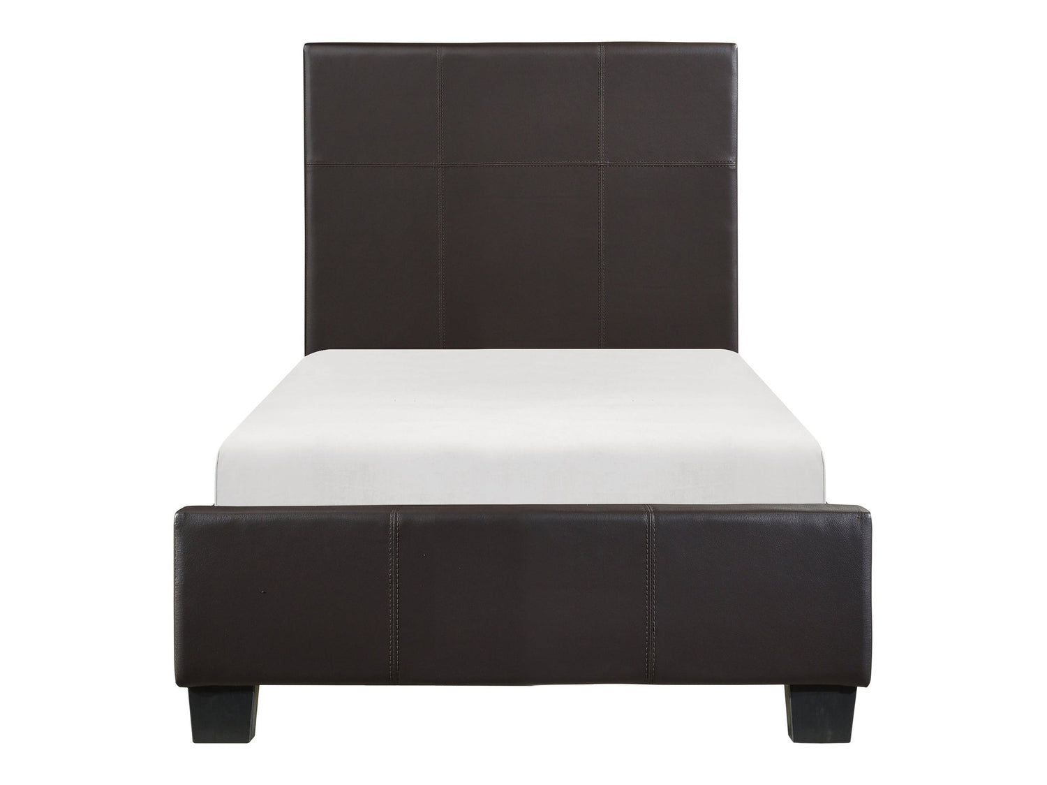The contemporary design of the Lorenzi Collection is enhanced by the addition of the durable dark brown faux leather covering of the twin bed’s exterior. This collection will provide a unique and stylish addition to your bedroom.