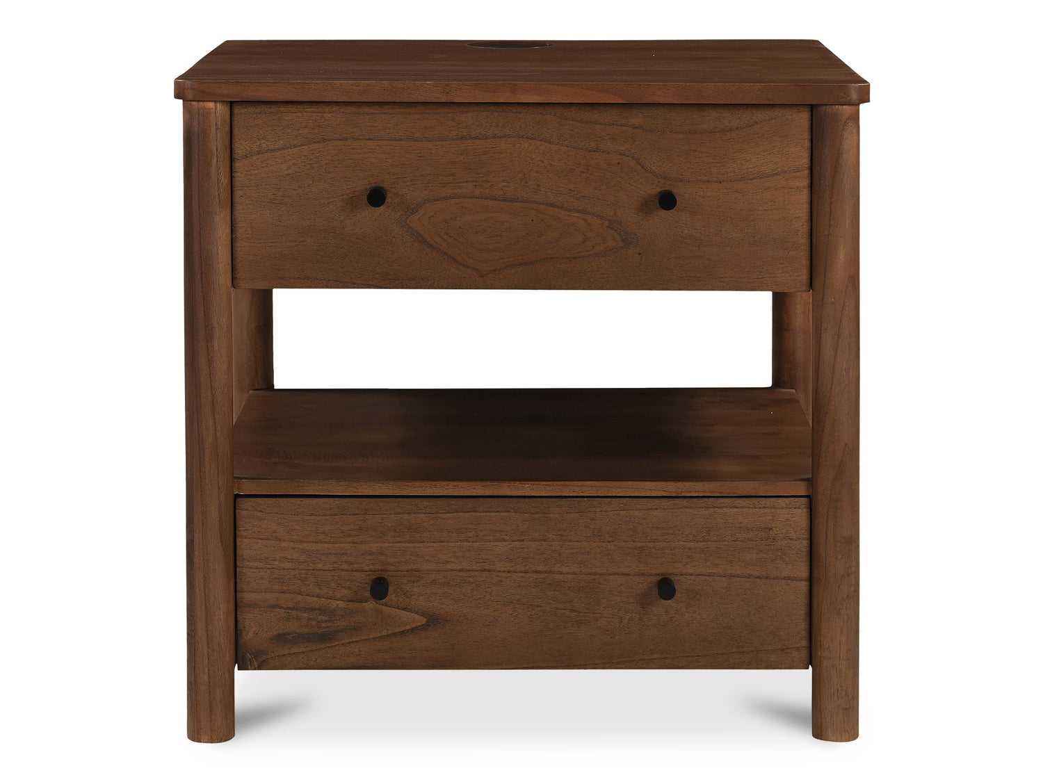 - Traditional silhouette & sizing with black handles, two drawers, & open middle space
