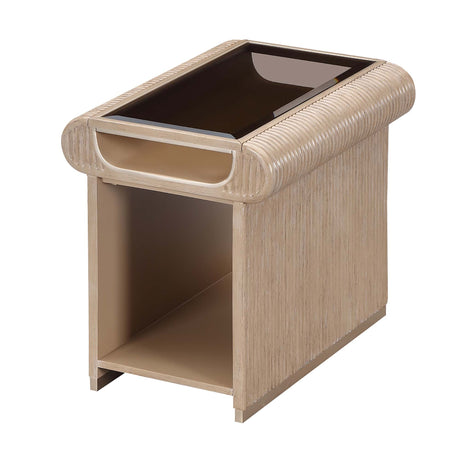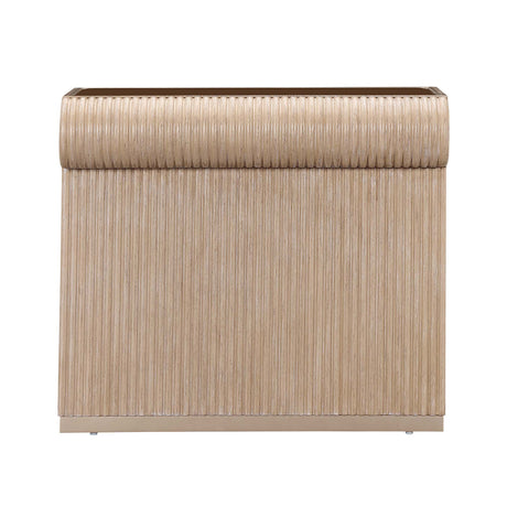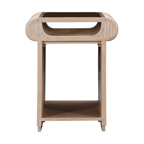 The Lotus Bay C-Shaped Accent Table brings function and elegance together in one striking design. Its streamlined silhouette features a sand-finished top with a white oak look, balanced by a brushed nickel leg inlaid with marbleized detailing. The leg’s unique wraparound design tucks seamlessly beneath the bottom base, creating both architectural appeal and effortless functionality. Designed for versatility, this table slides neatly over a sofa seat or beside a chair, offering a chic perch for a drink, laptop, or favorite book. A refined accent piece, it elevates both everyday living and elegant entertaining.
