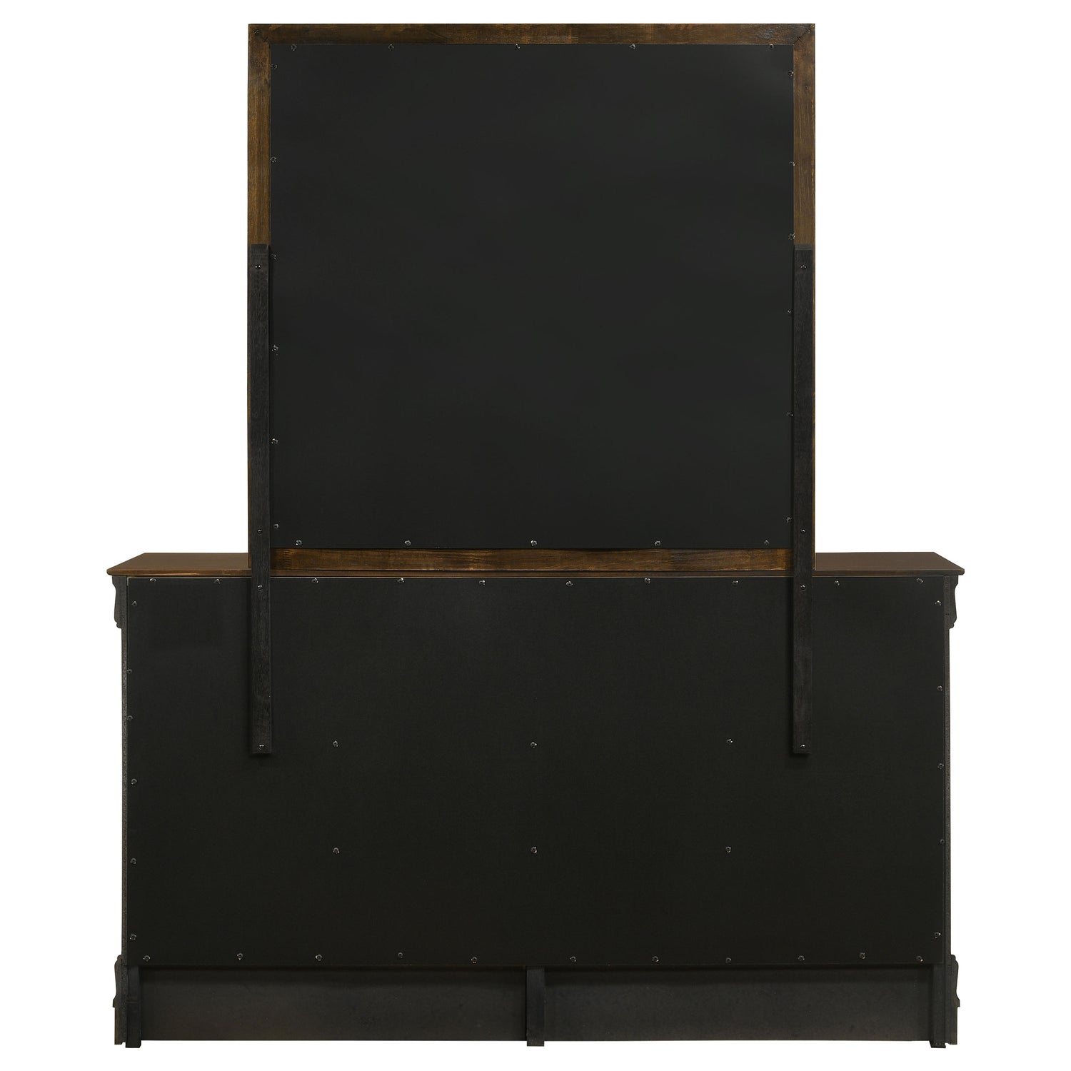- Includes: One (1) dresser and one (1) dresser mirror- six drawer dresser with elongated details in warm cappuccino finish