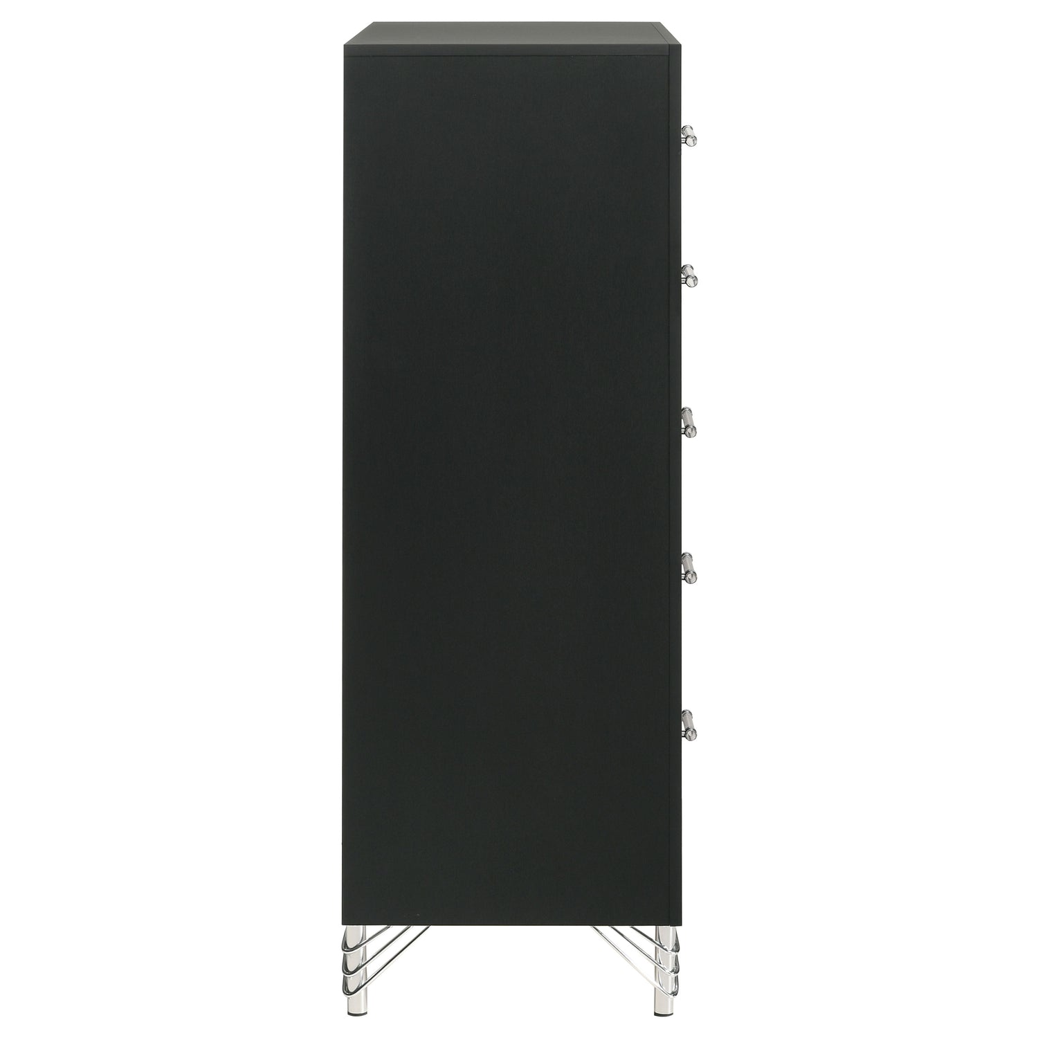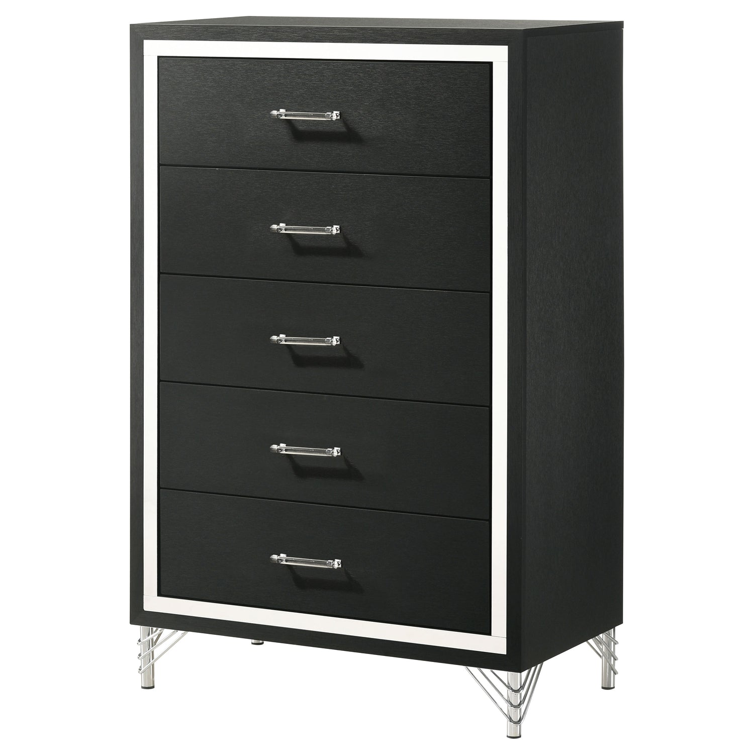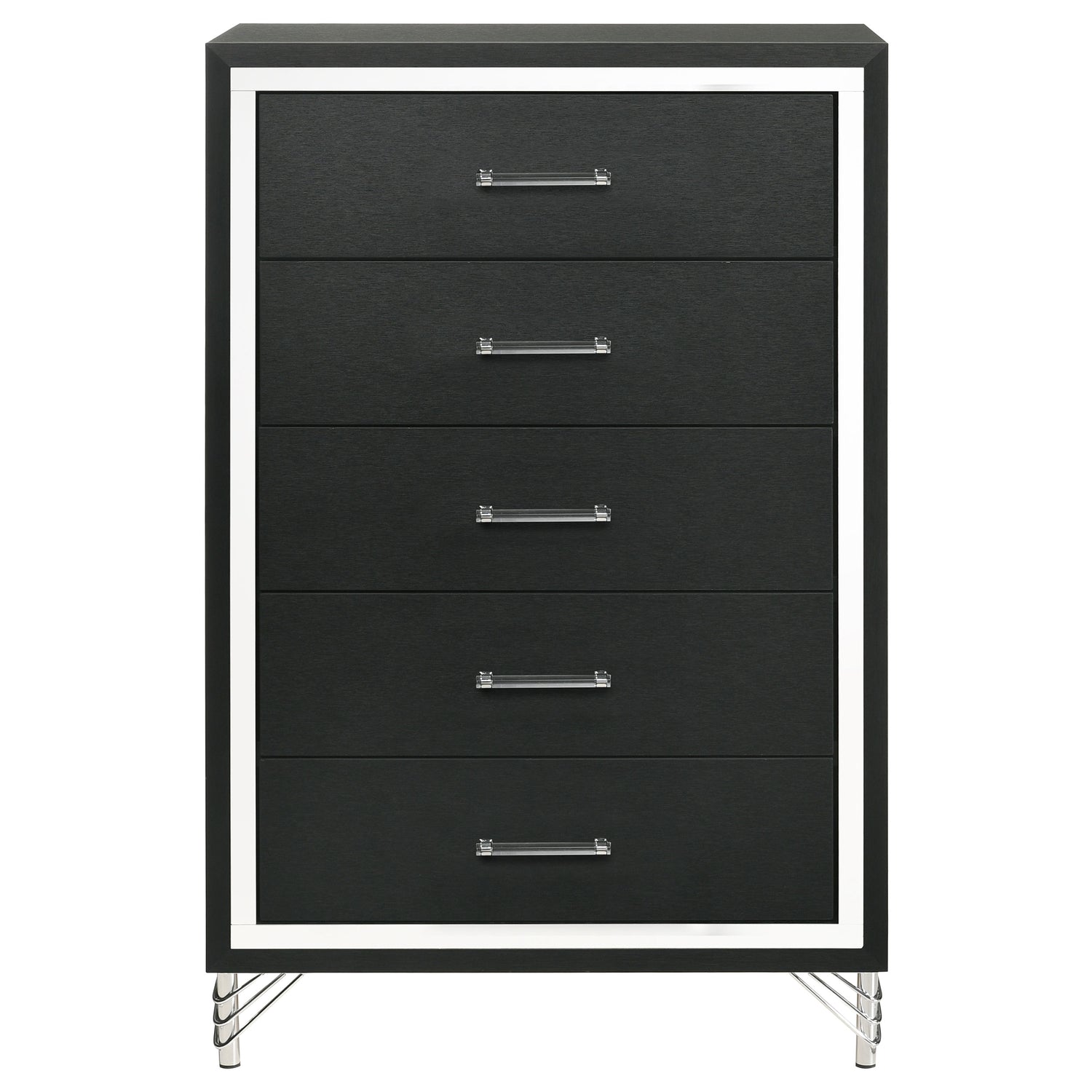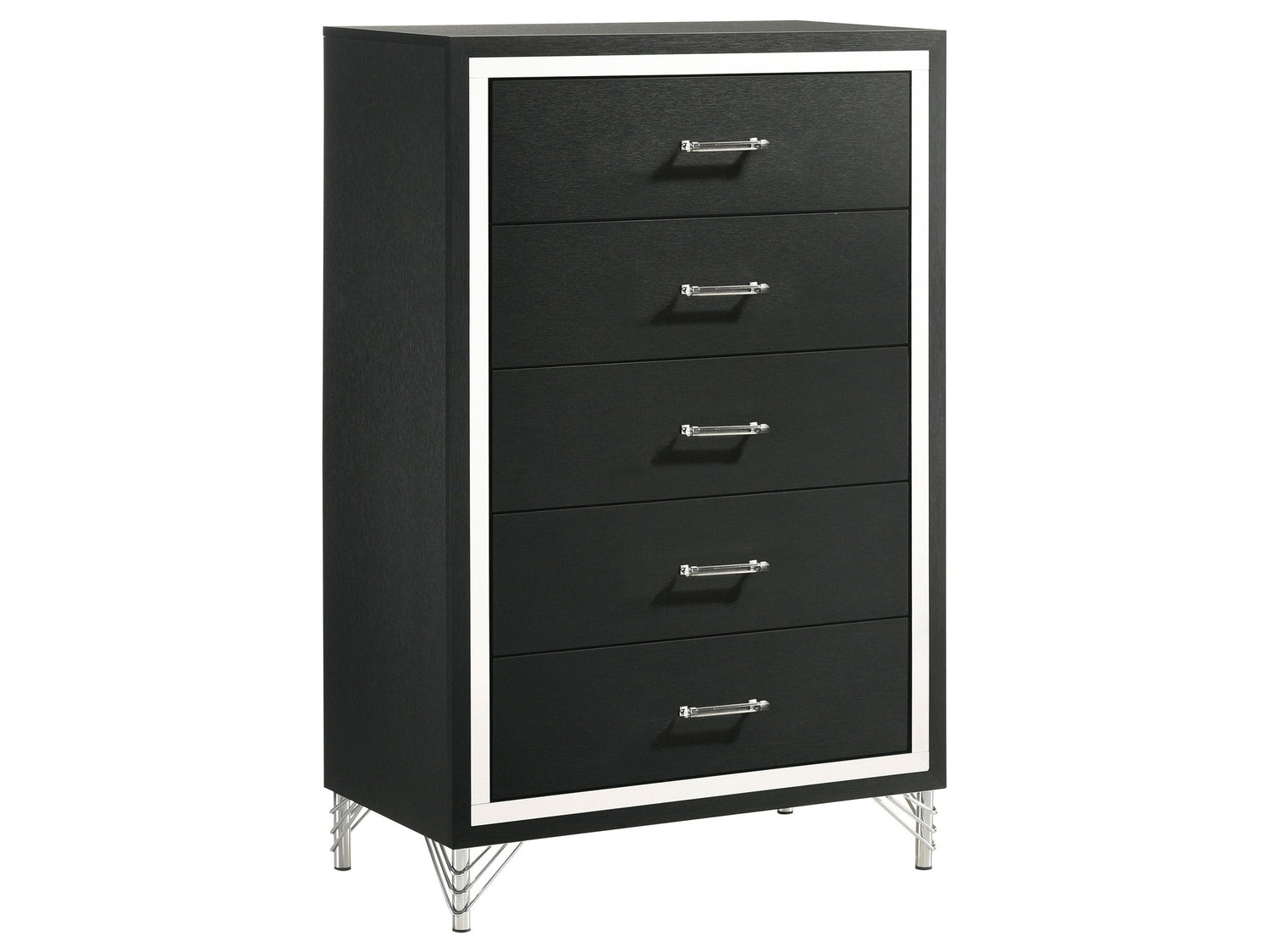 - Includes: One (1) chest- Chic touches bring glamour and elegant flair to a modern five drawer chest