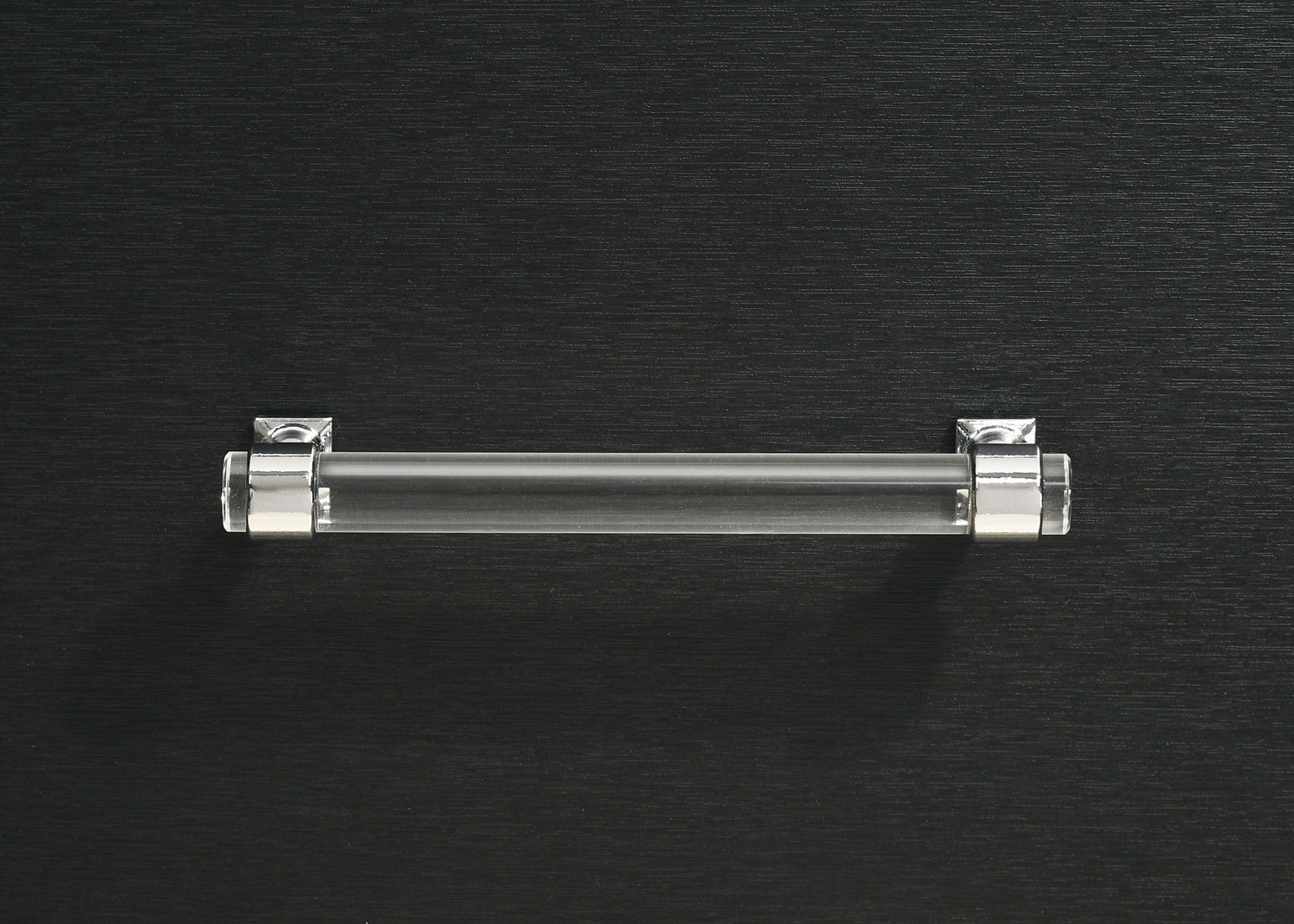 - Cool gleaming chrome finish trim highlights the front of the case, long bar pulls and decorative legs