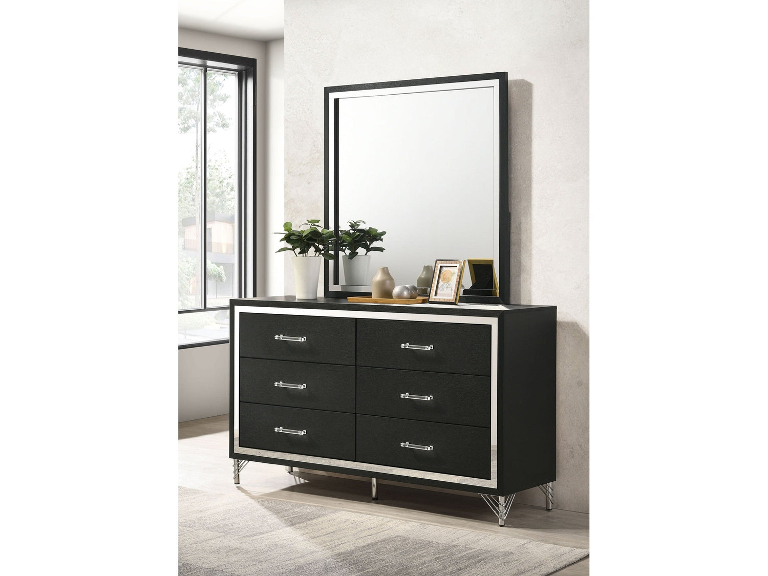 - Includes: One (1) dresser and one (1) dresser mirror- Glam flair infuses a modern six drawer dresser and mirror set to offer a bright, bold addition in any bedroom