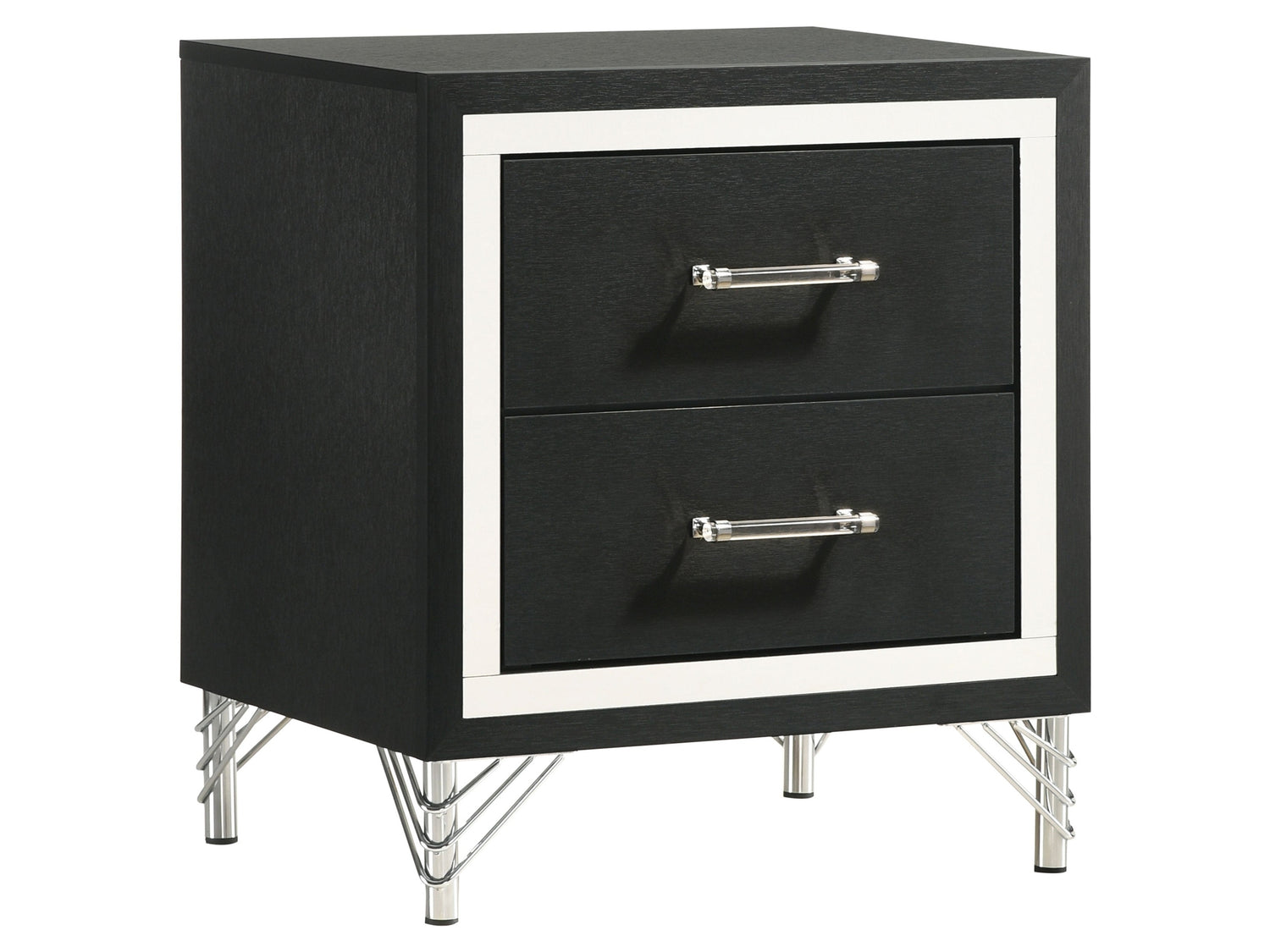 - Includes: One (1) nightstand- Chic touches bring glamour and elegant flair to a modern two drawer nightstand