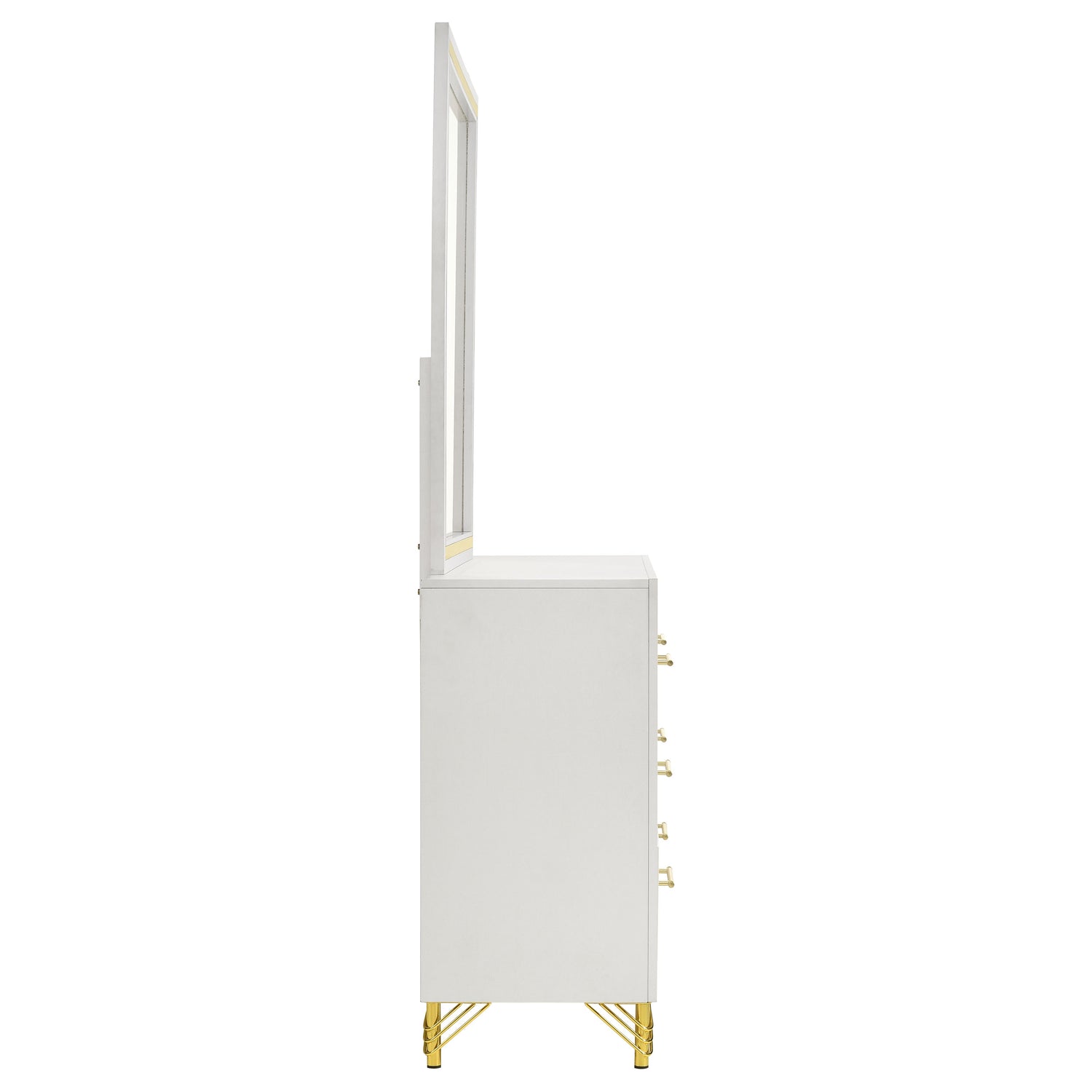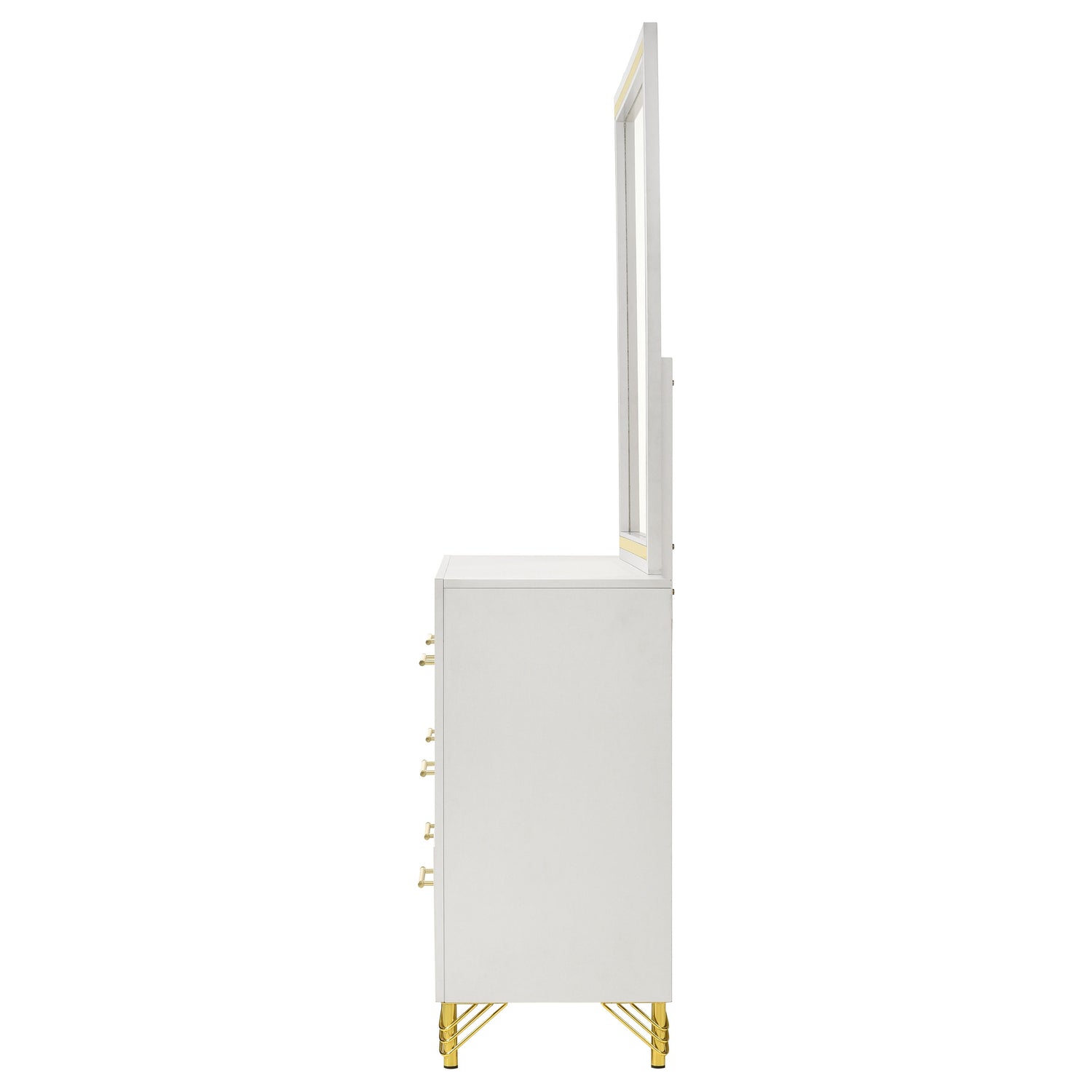 - Includes: One (1) dresser and one (1) dresser mirror- Glam flair infuses a modern six drawer dresser and mirror set to offer a bright, bold addition in any bedroom