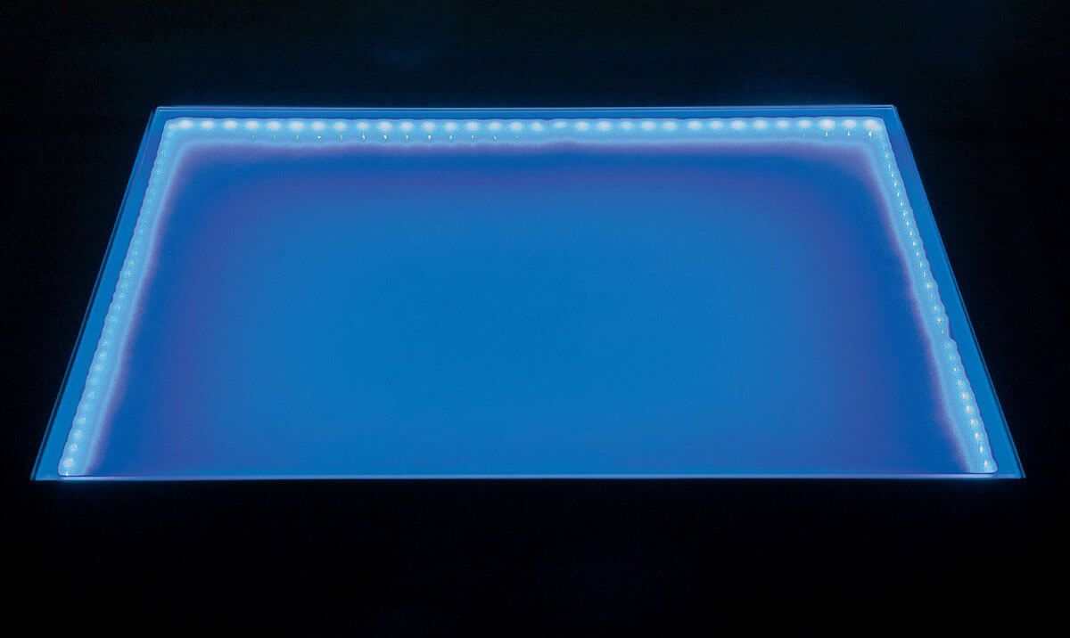 Contemporary inspired with radiant lighting to perfectly show off the fine points of this table. This is accented with plush key-hole chairs and an illuminated table base.