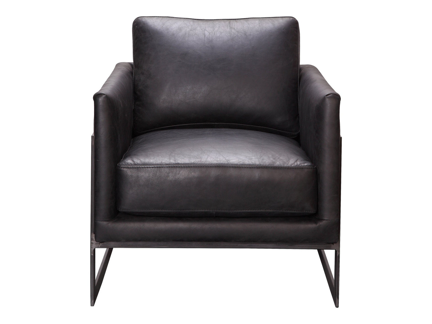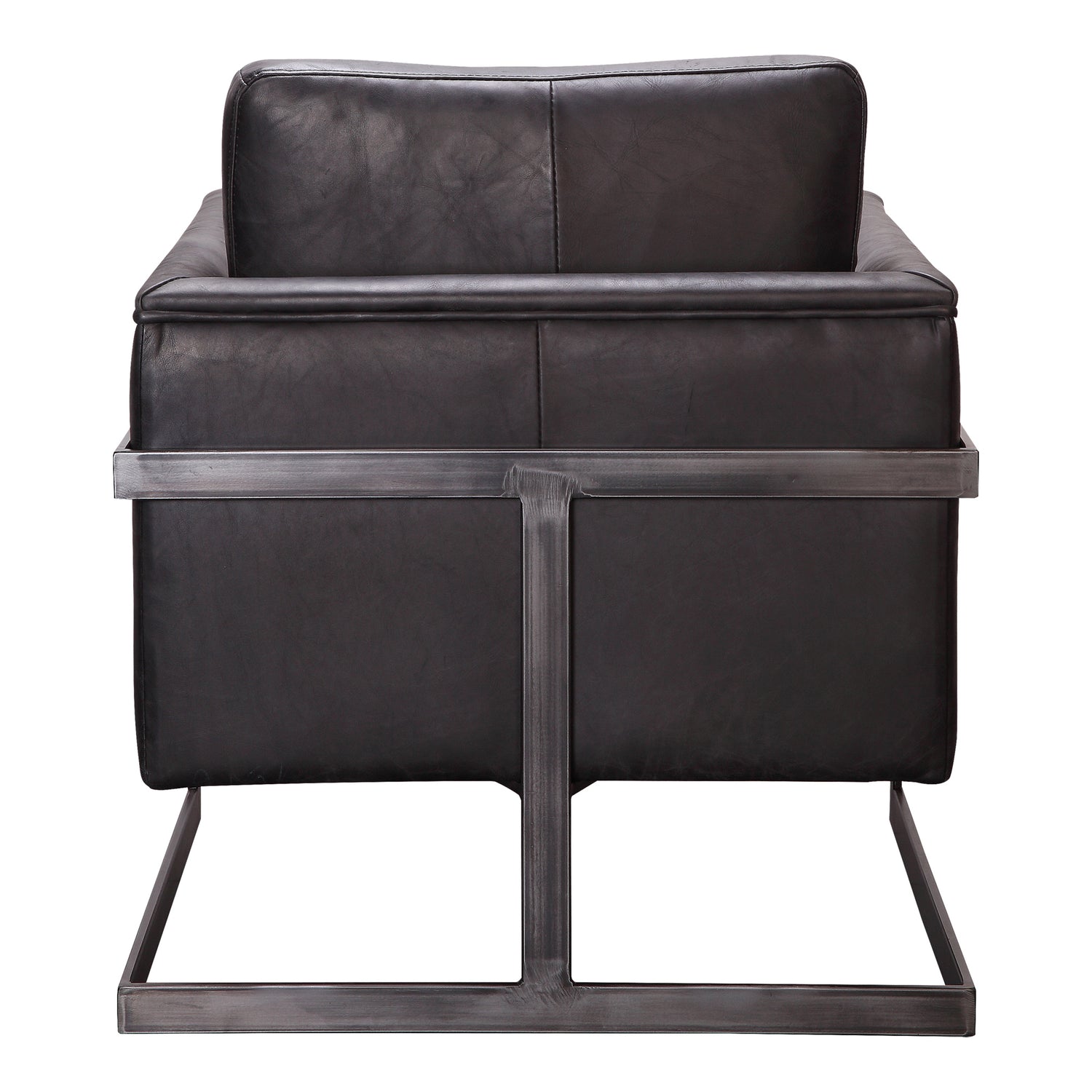 - Top-grain leather upholstery- Semi-cantilevered iron base