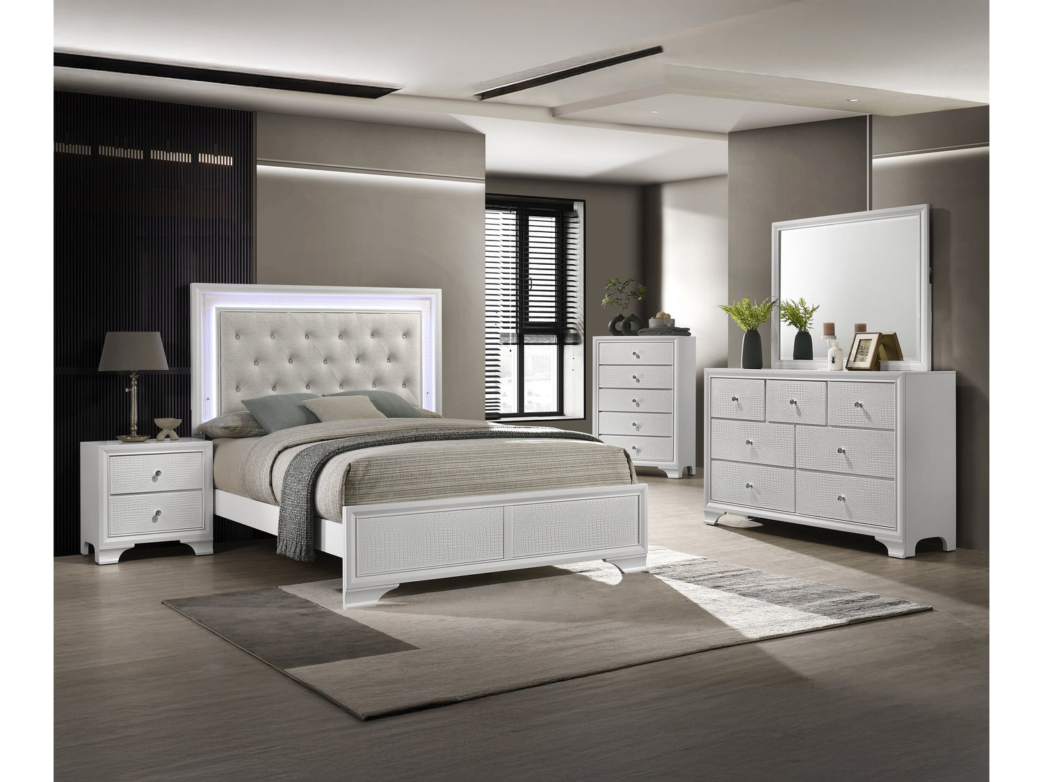 Step into a realm of youthful sophistication and comfort with the Lyssa Frost LED Panel Youth Bedroom Set. Designed to inspire both style and functionality, each piece beautifully balances modern flair with a hint of classic charm. The bed stands out with its sleek LED-lit headboard, adding a playful yet elegant glow to any young dreamer’s space. Coordinating pieces — including a dresser, chest, and nightstand — provide generous storage with smooth drawers and shimmering hardware, creating a bright and contemporary look that perfectly complements any modern youth bedroom.