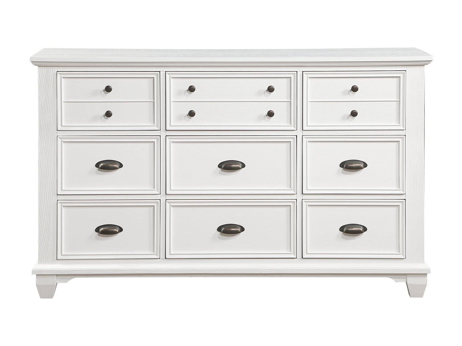 Bringing to mind lazy days at the beach, or peaceful afternoons in the country, the Mackinac Collection’s charming aesthetic pairs to your home’s classic décor. The traditional framing of the collection is covered in a white finish, its bright hue a refreshing addition to your bedroom. The knob and cup pull hardware of the dresser features an antique brass finish, providing complementing contrast, and charming accent, to the white finish of the collection.