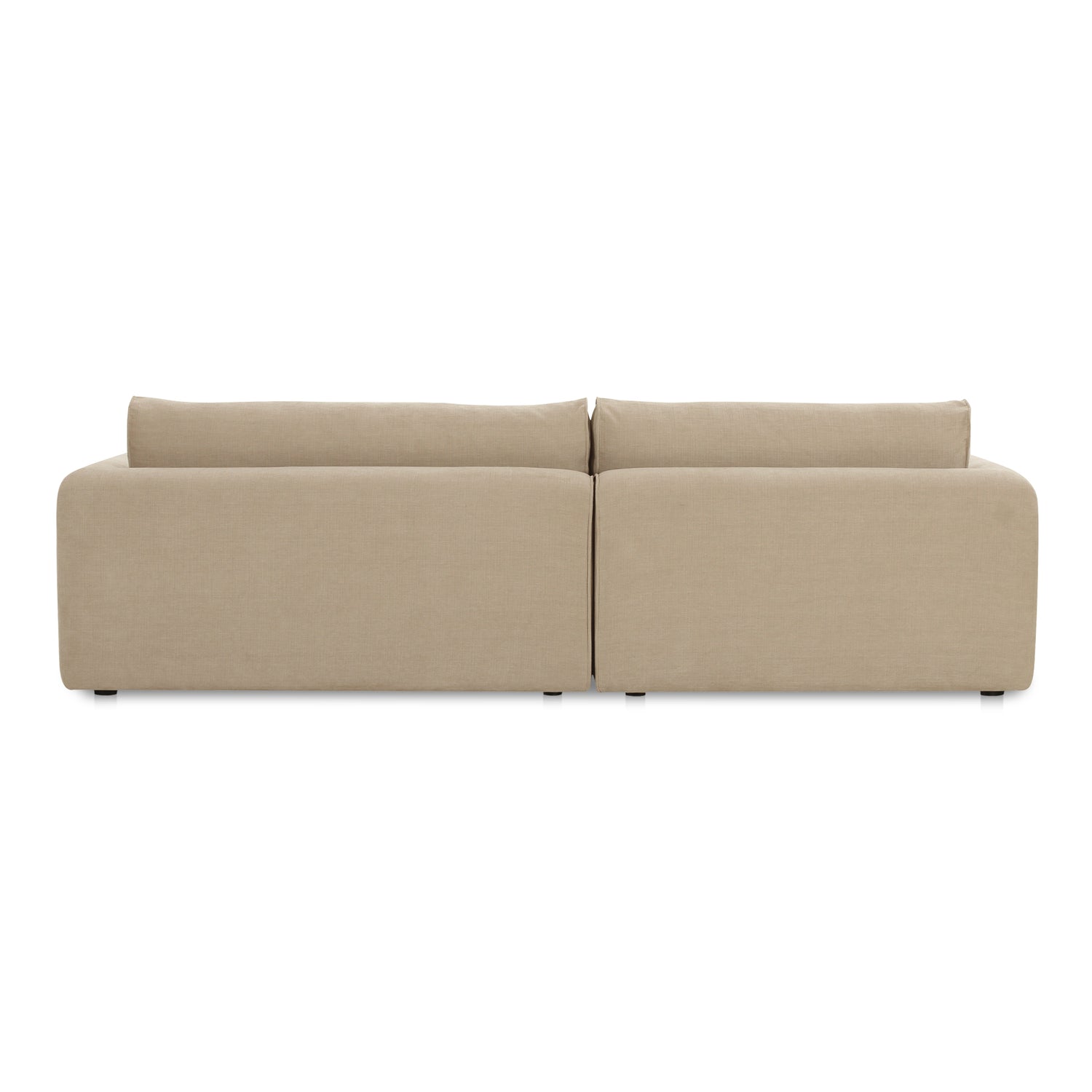 - Ultra soft chenille fabric upholstery with railroad weave & tonal piping in arm & back cushions- Angle detail with wide form unlike typical chaise designs
