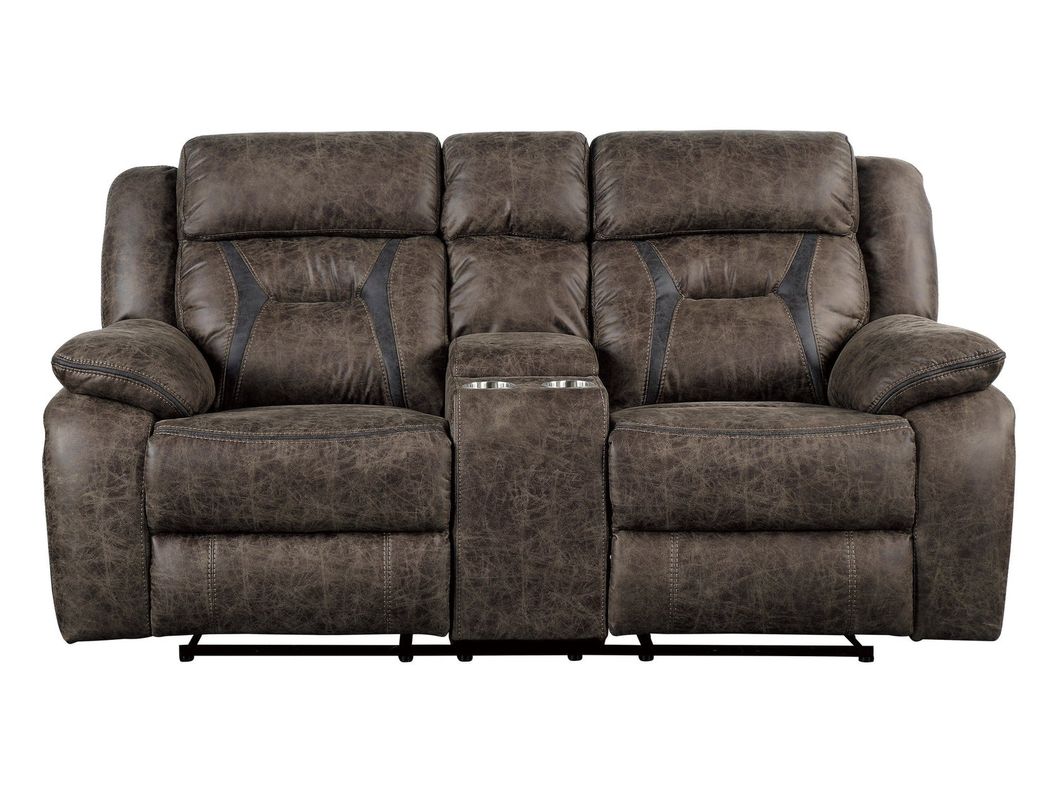 Your vision for creating the ideal environment for rest and relaxation is made reality with the addition of the Madrona Hill Collection. This plush seating group is offered in a dark brown polished microfiber, with contrast stitching and decorative accent, making it a unique choice for transitional to modern homes. Manual motion mechanisms operate with the pull of a side-mounted tab, that once engaged, take you from seated to reclined in an easy motion. The love seat features dual reclining ends.