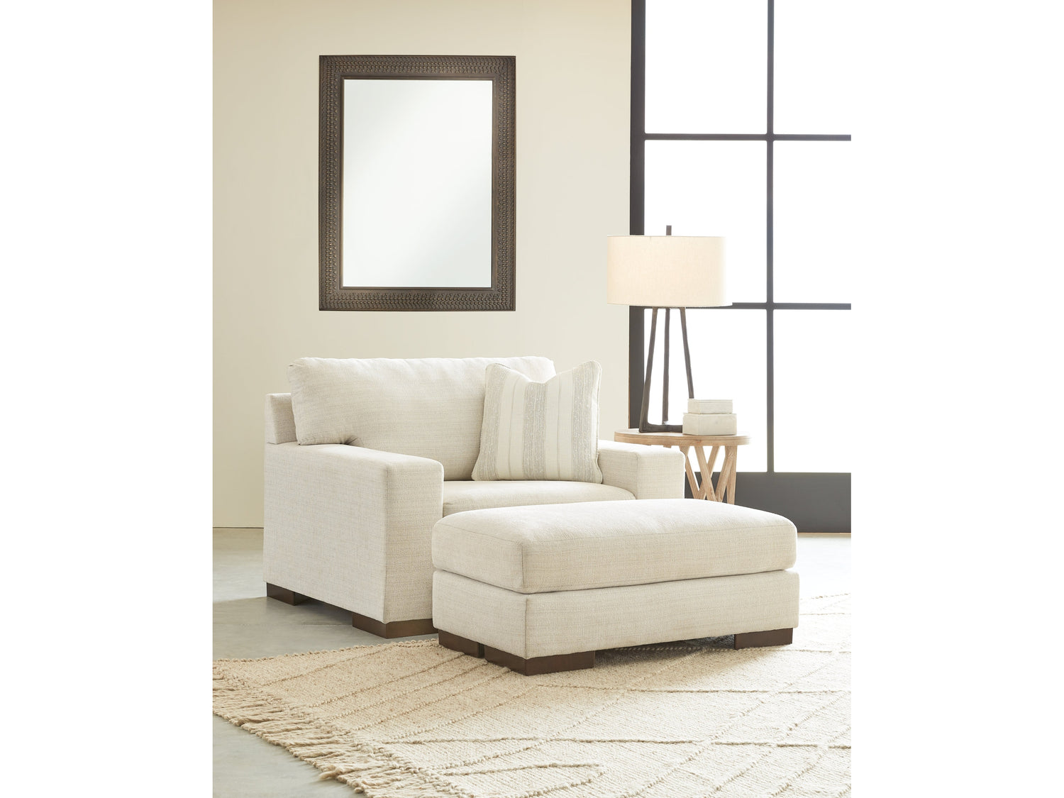 Classic comfort gets a mod twist with this oversized chair and ottoman package. Its minimalistic approach and structured silhouette bring a clean-lined design element to your living room. Sink into the positively plush cushions while relaxing solo, or curl up with a glass of wine while hosting guests. And with light neutral upholstery that suits both casual and contemporary spaces, this set offers endless style possibilities.
