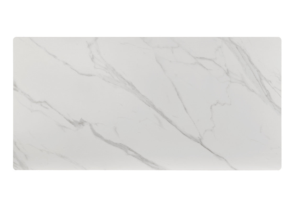 - Material: Sintered Stone, Rubberwood, MDF, Metal, Chenille Fabric, Foam- Color: Black/White