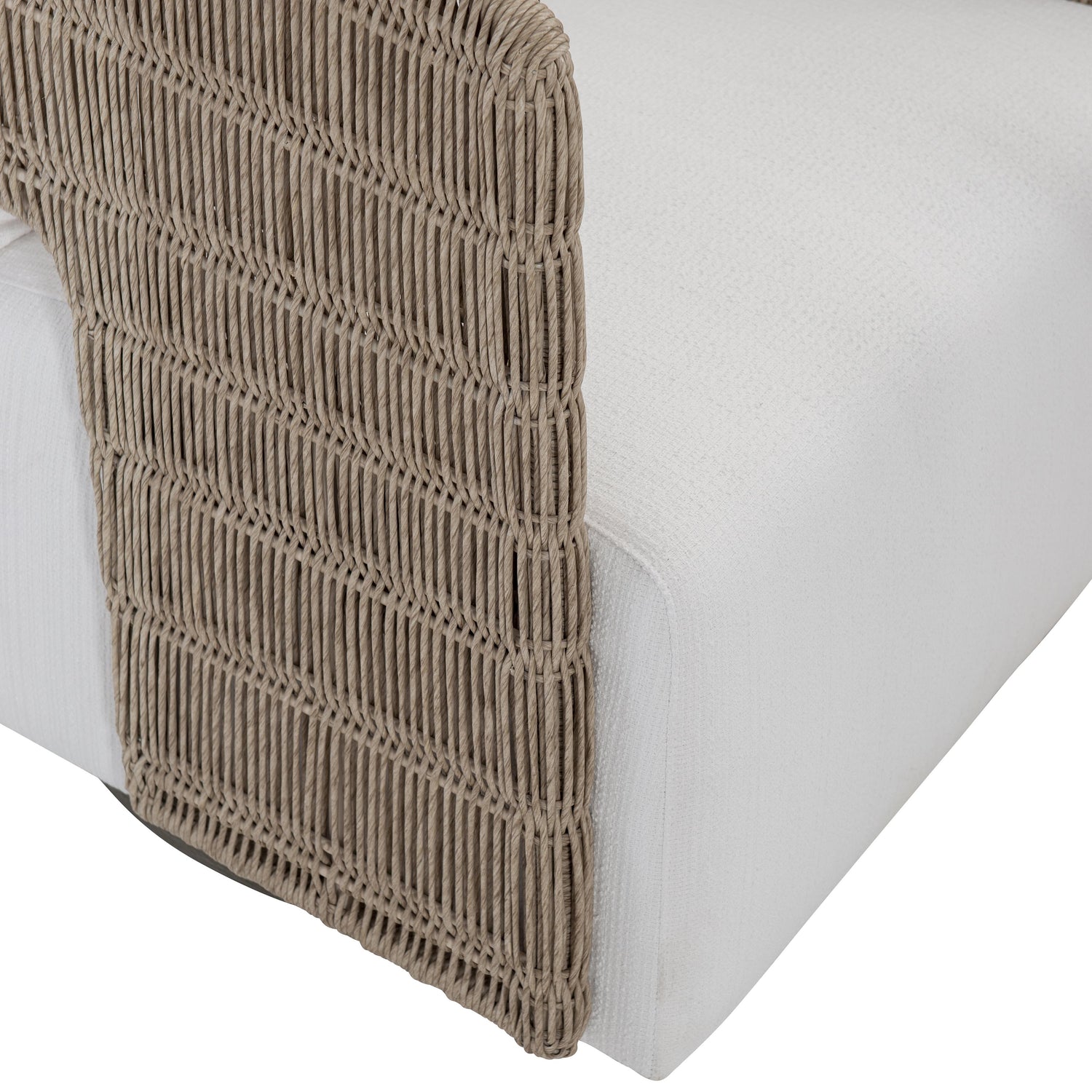 - Powder-coated aluminum frame wrapped in twisted abaca All-Weather Wicker in Hazelnut finish