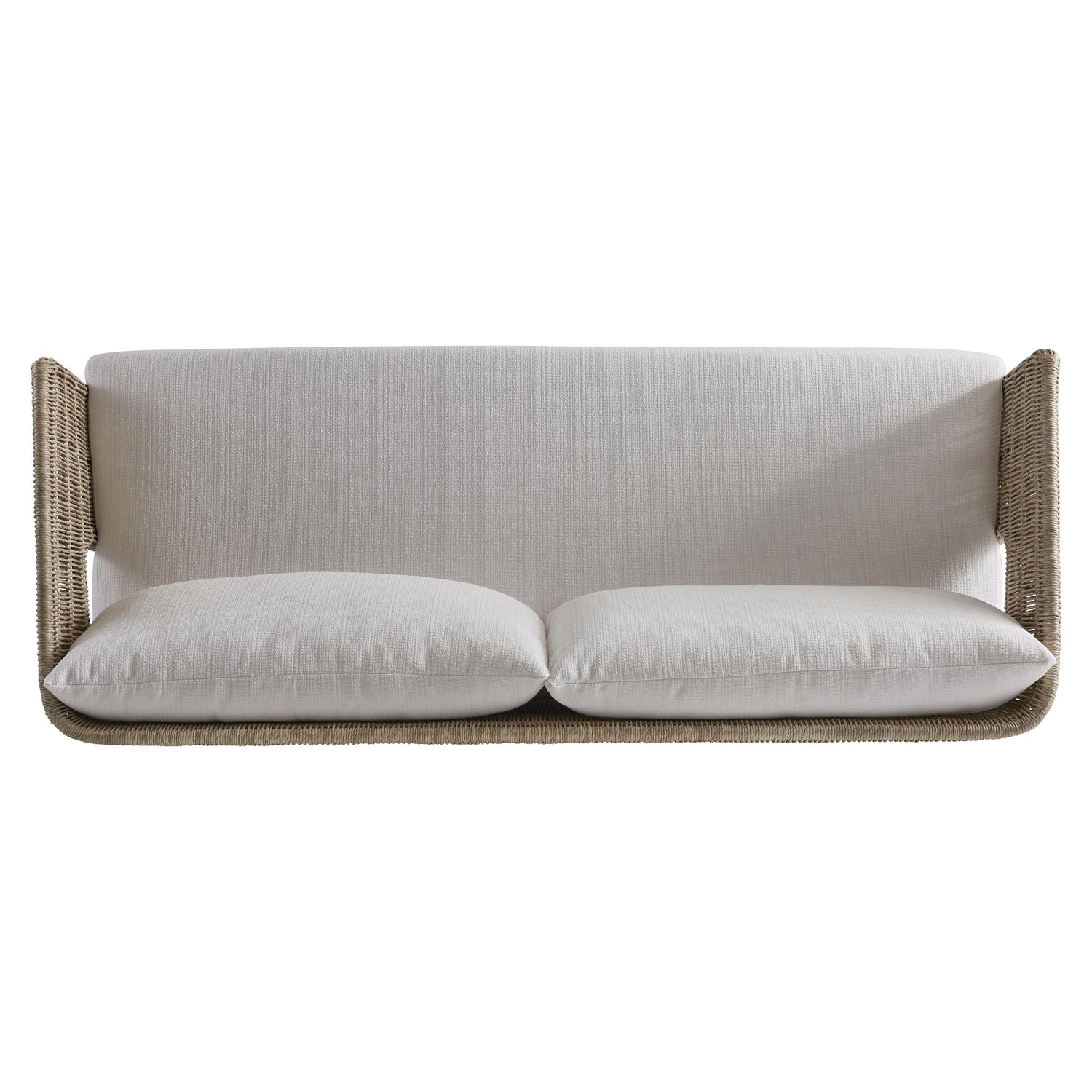 - Powder-coated aluminum frame wrapped in twisted abaca All-Weather Wicker in Hazelnut finish