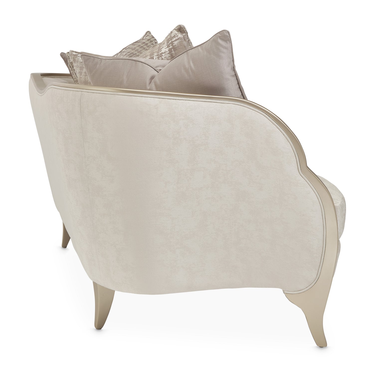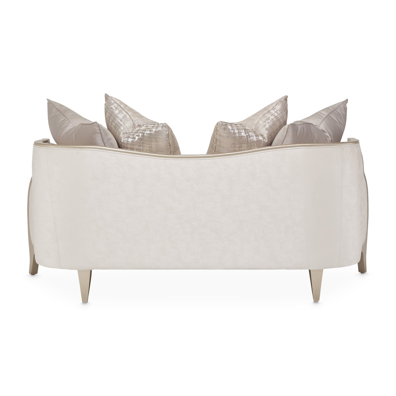 Design your home for romance. The Malibu Crest Loveseat features an exquisitely curved body, V-notch arms finished in Chardonnay, and a softly textured seat certain to brighten your home atmosphere instantly!