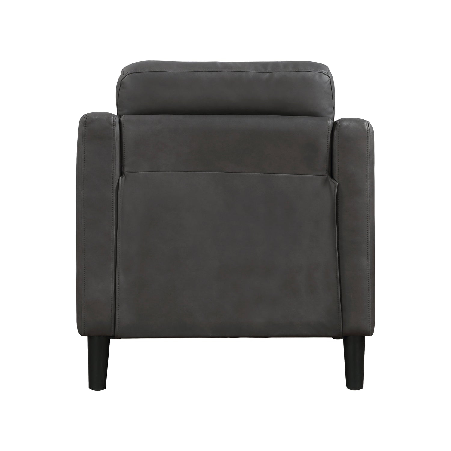 A versatile look for your casual living room comes in the form of the Mallory Collection. The button tufted seat back and contoured arms lend traditional accent to this transitional chair, with gray polished microfiber upholstery furthering the decorative versatility of the piece.