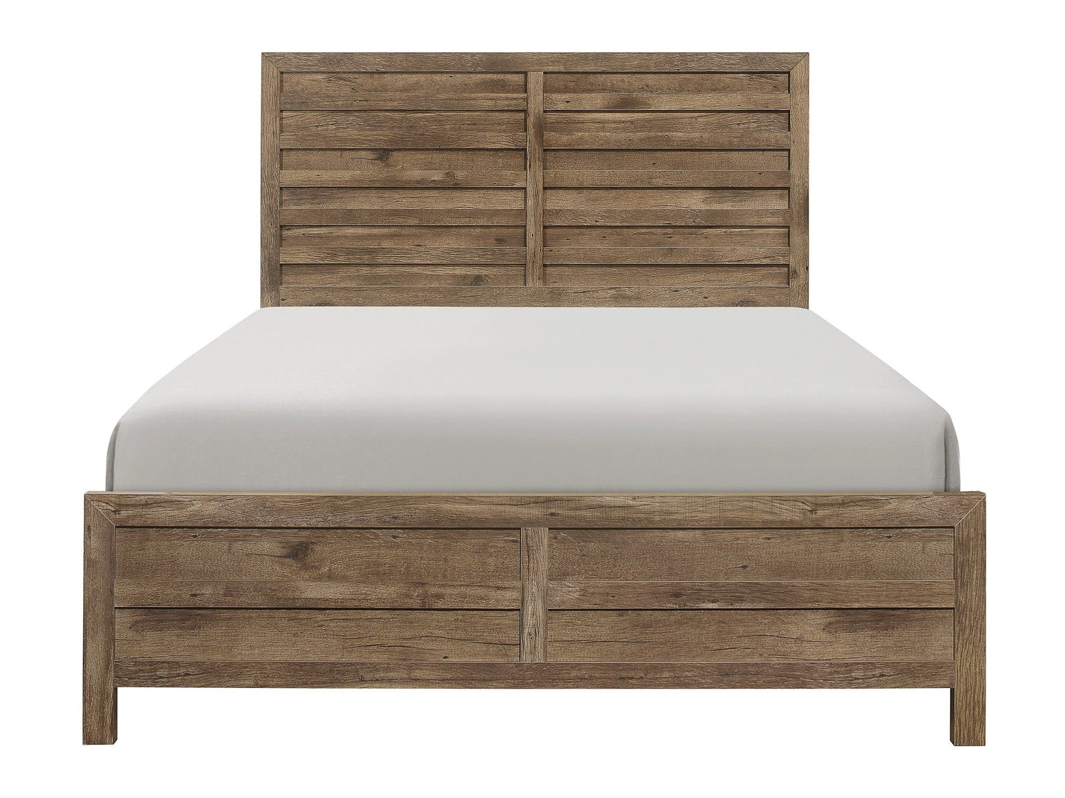 The modern lines of the Mandan Collection are blended with transitional aesthetic to create a unique offering for your bedroom. Utilizing faux wood veneer creates the look of authentic wood planks with the weathered pine finish further lending to the rusticated style of the Queen size bed.