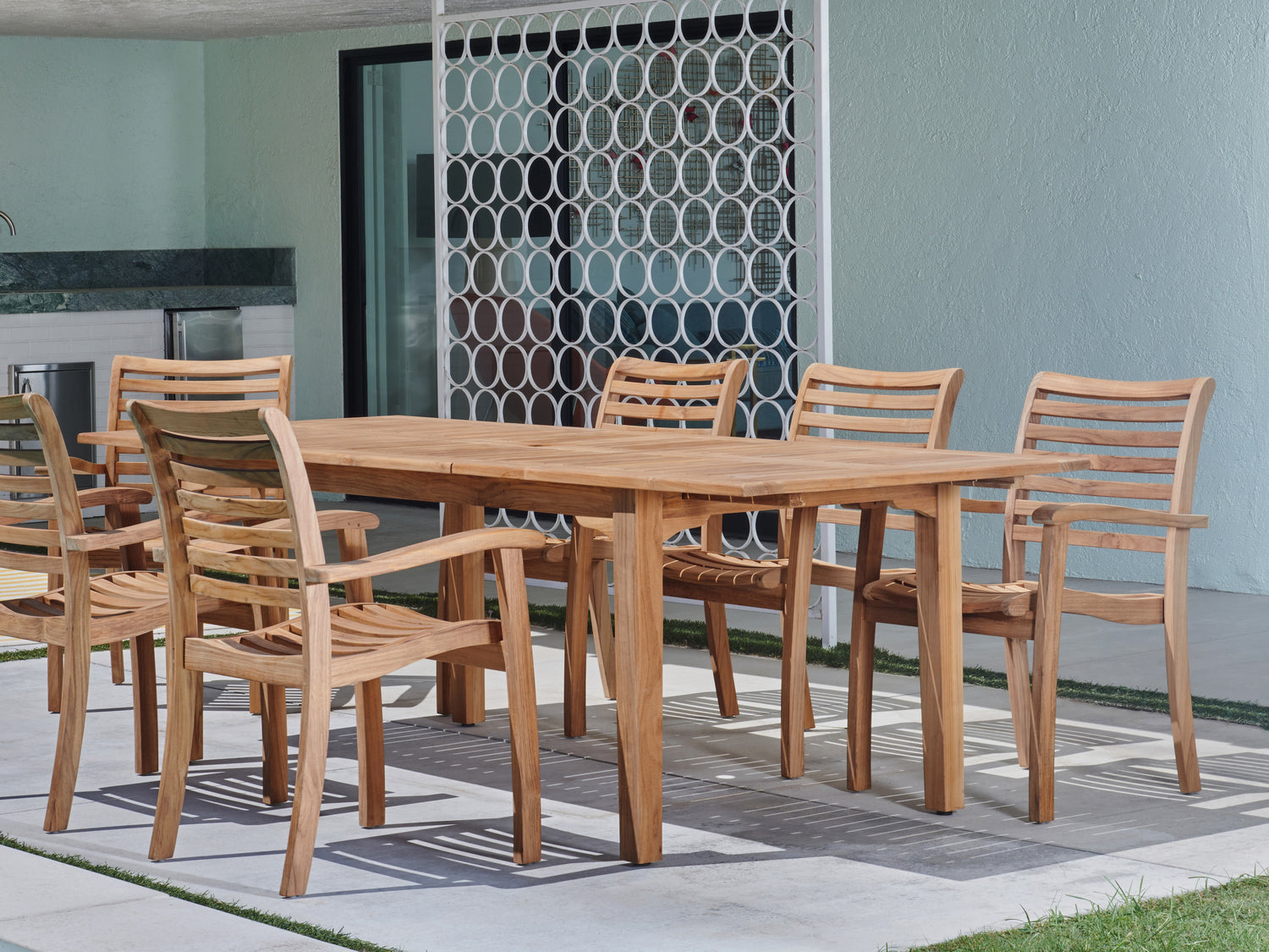 - Item Name: Manorhouse Rectangular Teak Outdoor Dining Table with Built-In Extension and Umbrella Hole