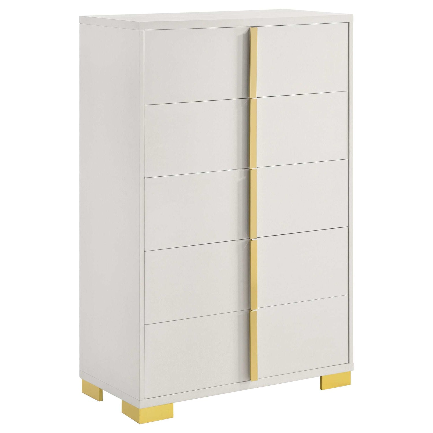 5-piece full bedroom set in cool white and warm gold