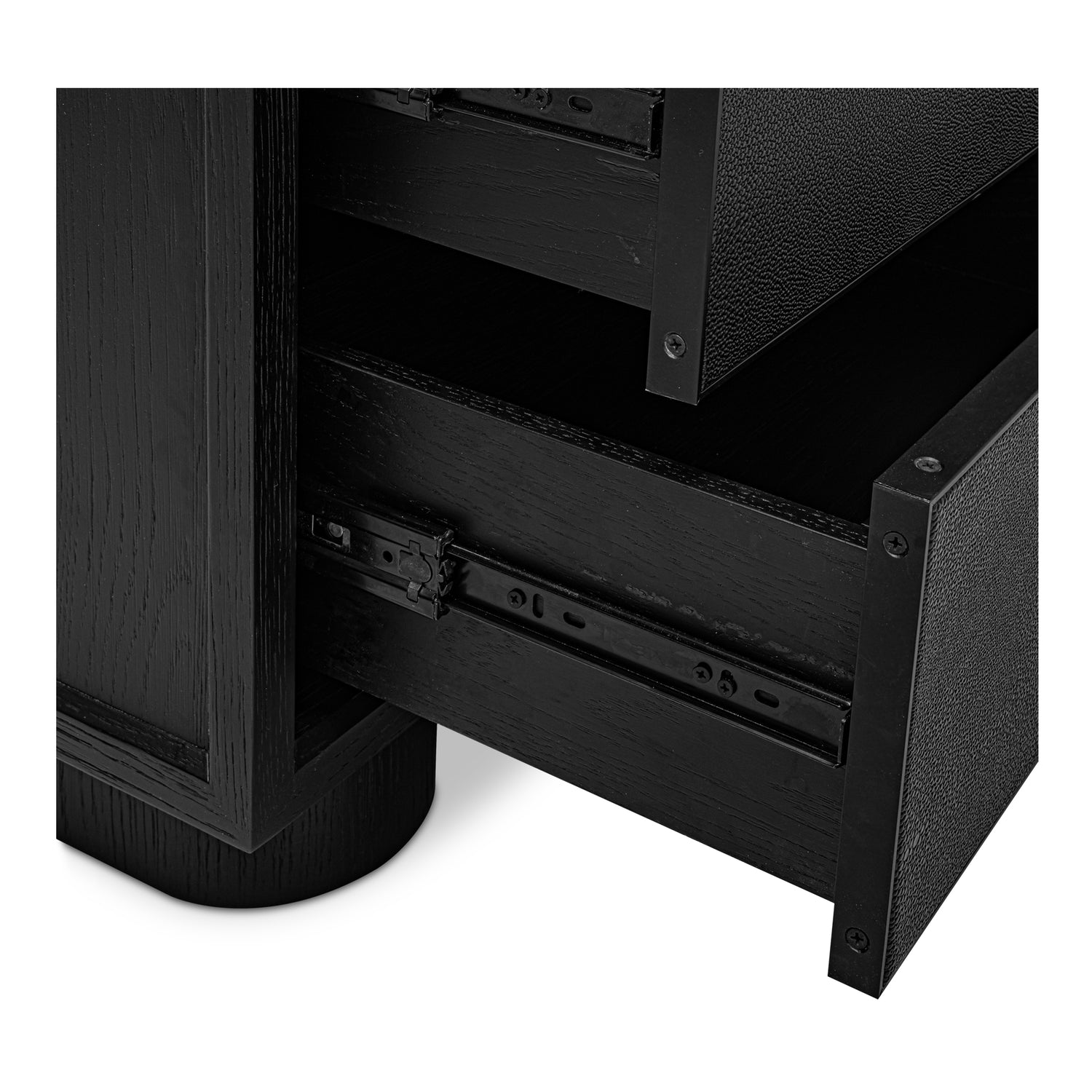 - Antique gold metal frame between wire-brushed oak frame & white shagreen door. Oak veneer top & side panels