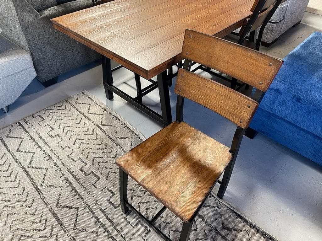 The industrial design of Mariatu side chair offers a warm complement to your dining space. Featuring a gently curved ladder back, contoured seat, and tapered legs. This side chair is well-crafted of wood veneers and metal in an oak and black finish. This side chair seats people comfortably at dining height.