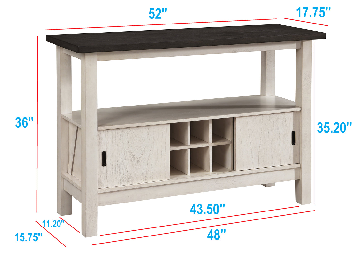 - Server/Sideboard Dimensions: 52"L X 18"W X 36"H