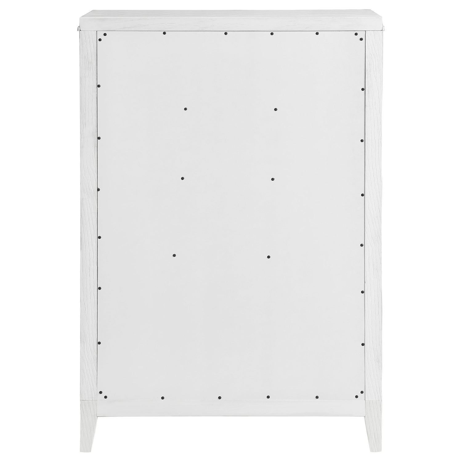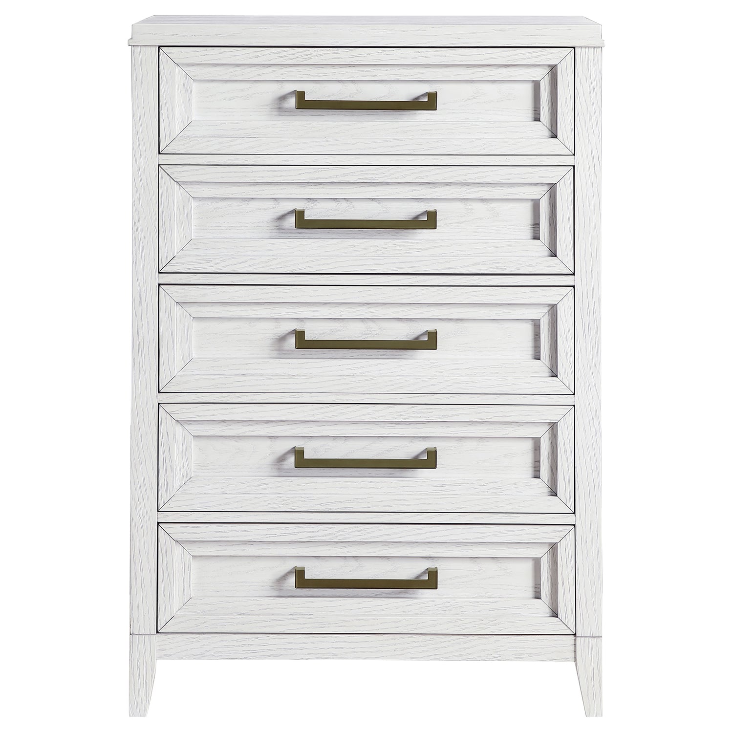 - Includes: One (1) chest- A modern five drawer storage chest offers a clean lined silhouette and lots of storage