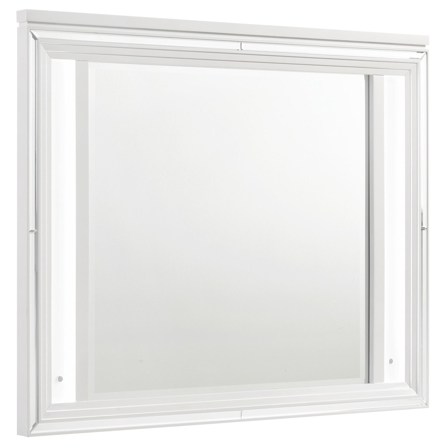 - Touch LED lights in the headboard and mirror provide added convenience and a modern touch to your bedroom