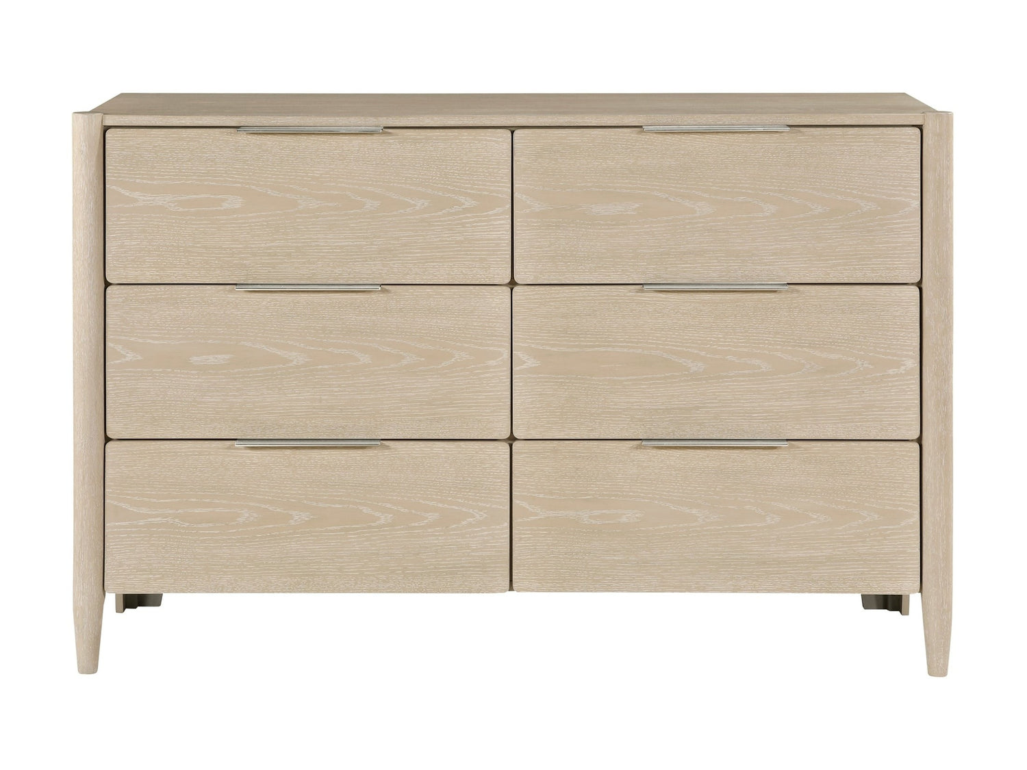Soft modern lines comprise the design of the Matteo Collection, while convenience features provide functional accent to your bedroom. The light oak finish over oak veneer of the dresser lends a light and airy aesthetic to your bedroom.