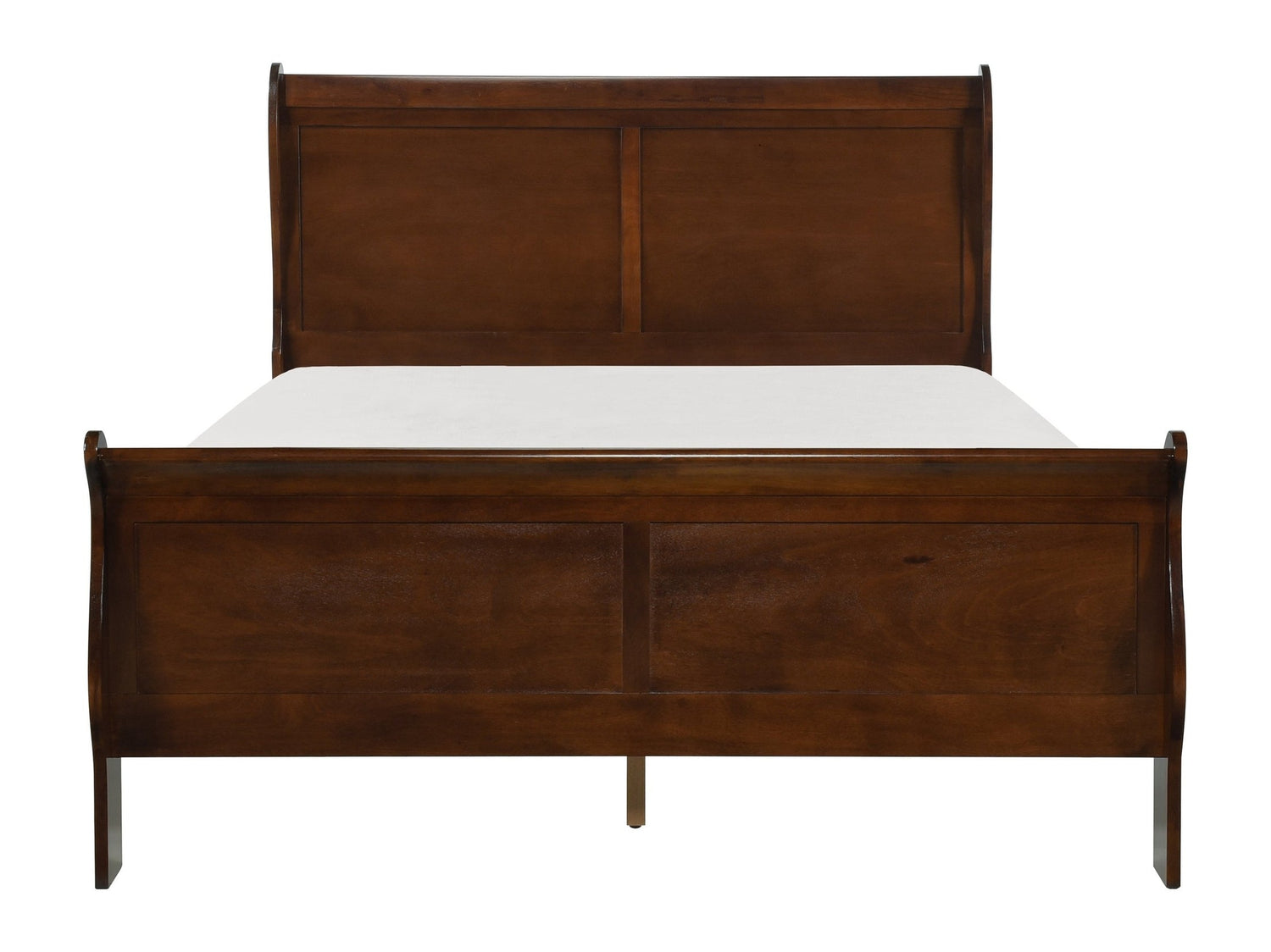 Traditional in design and modest in scale, the elegant Mayville Collection takes its design inspiration from the classic Louis Philippe styling. Burnished brown cherry finish lends timeless appeal to the traditional full sleigh bed.