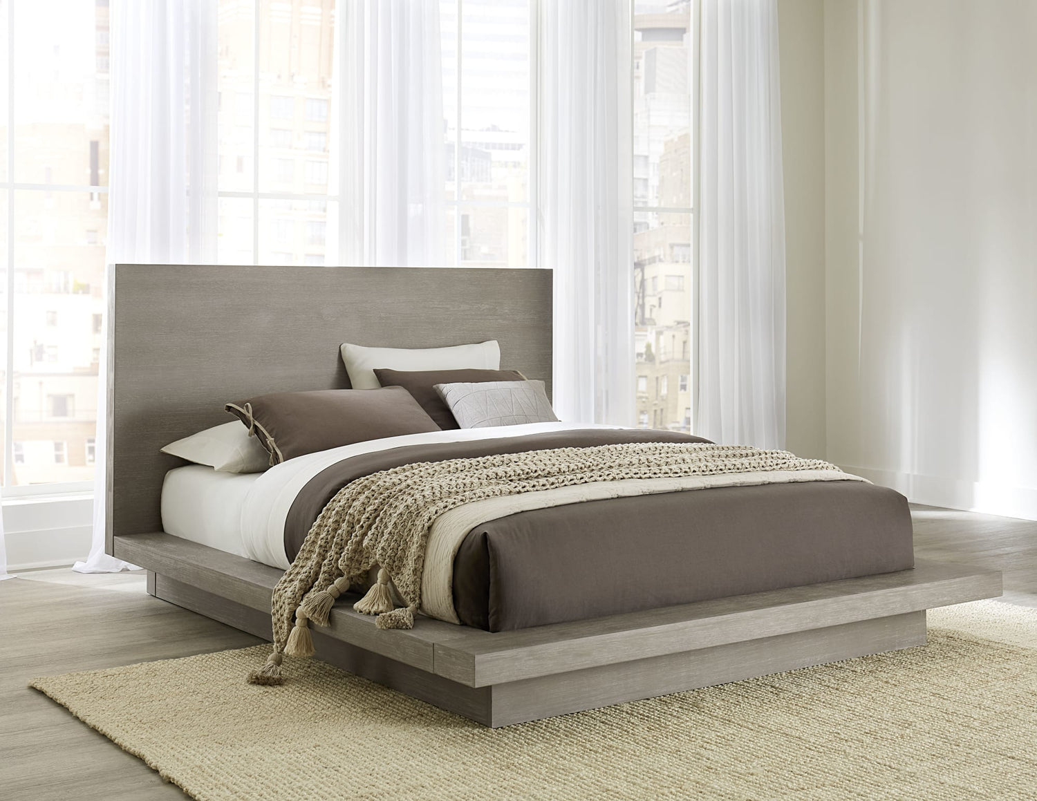 - Generously scaled piece is wide and low to the ground in a classic minimalist modern style