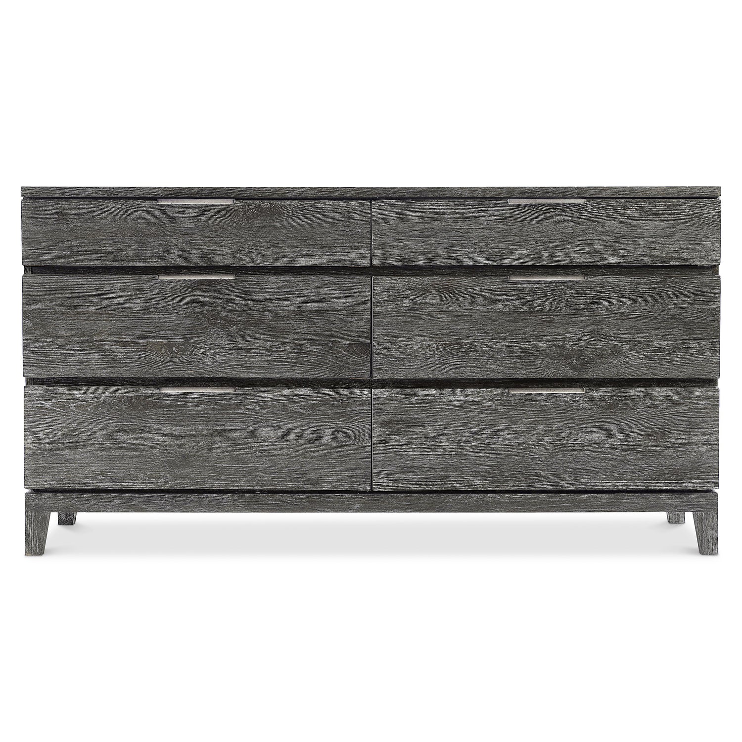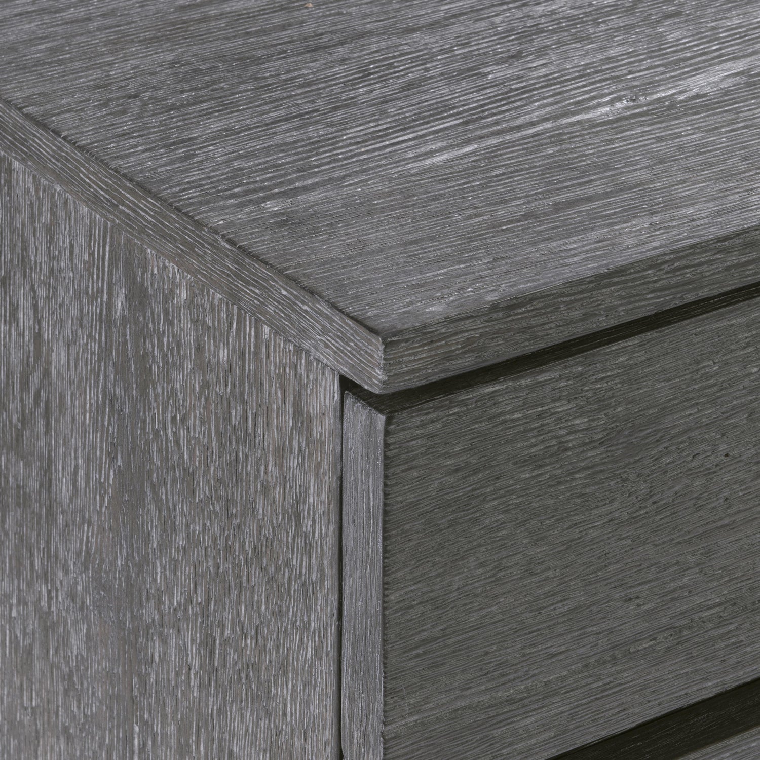 - Rustic oak in Sutton finish with cast aluminum tab pulls in Dark Graphite