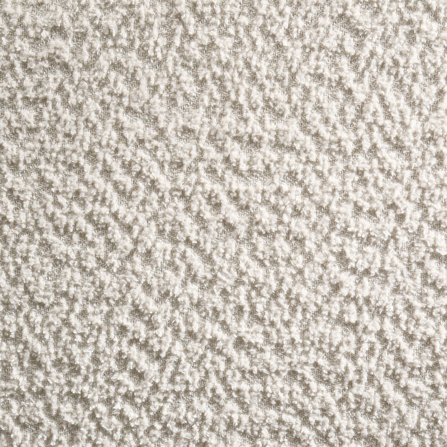 - Plush foam cushioning is upholstered in soft, textured fabric in a neutral hue