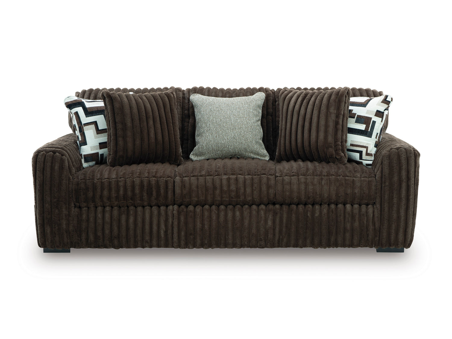 Wrapped in luxuriously soft jumbo corduroy, this sofa takes cozy and inviting to a higher level. The sumptuous piece is perfect for unwinding after a long day, with exceptionally textured cushions that deliver pure indulgence. Now all you have to do it kick back, sink in and relax. Ornate Home introduces Ashley Midnight-Madness Super Chaise to enhance the beauty of your living room.